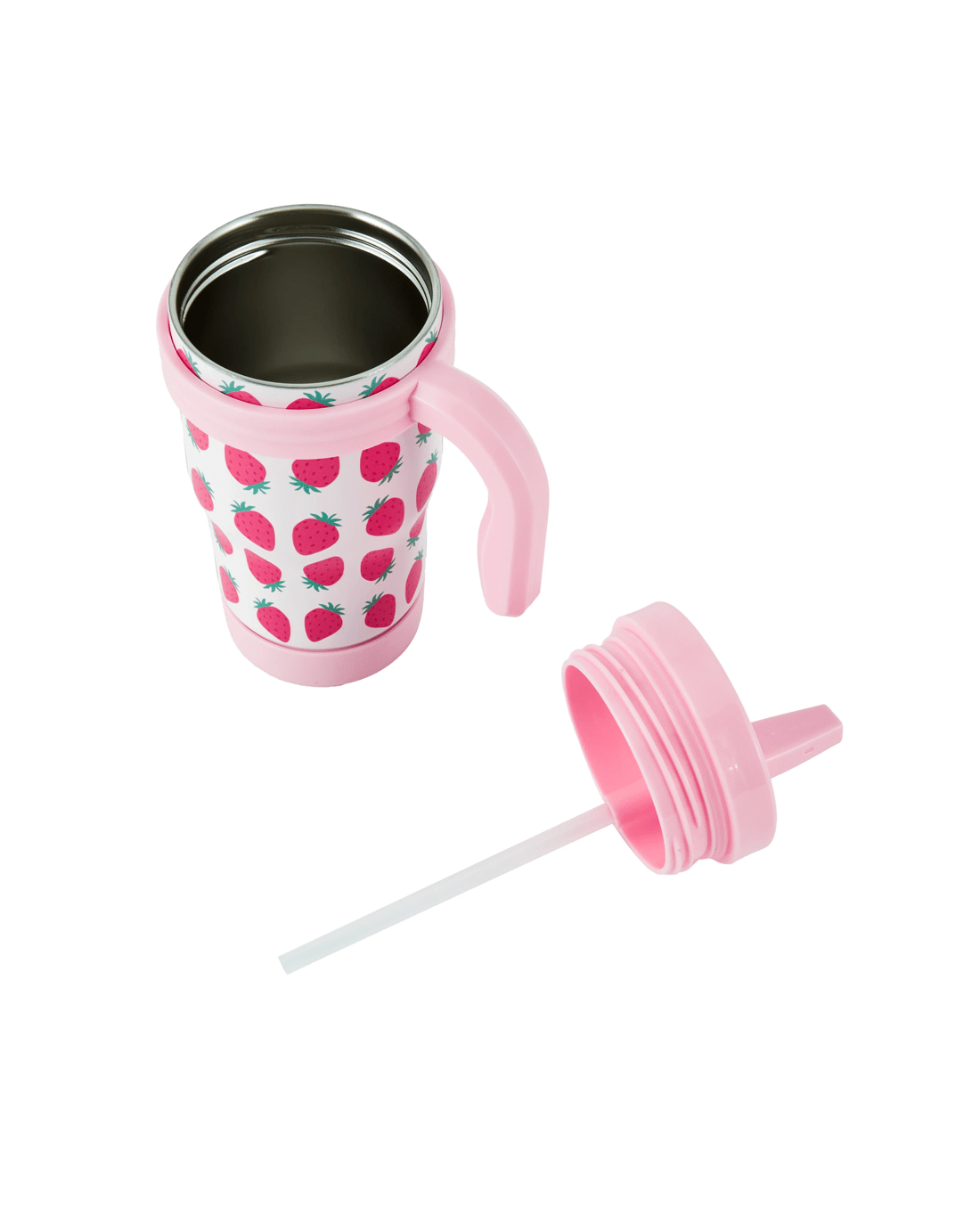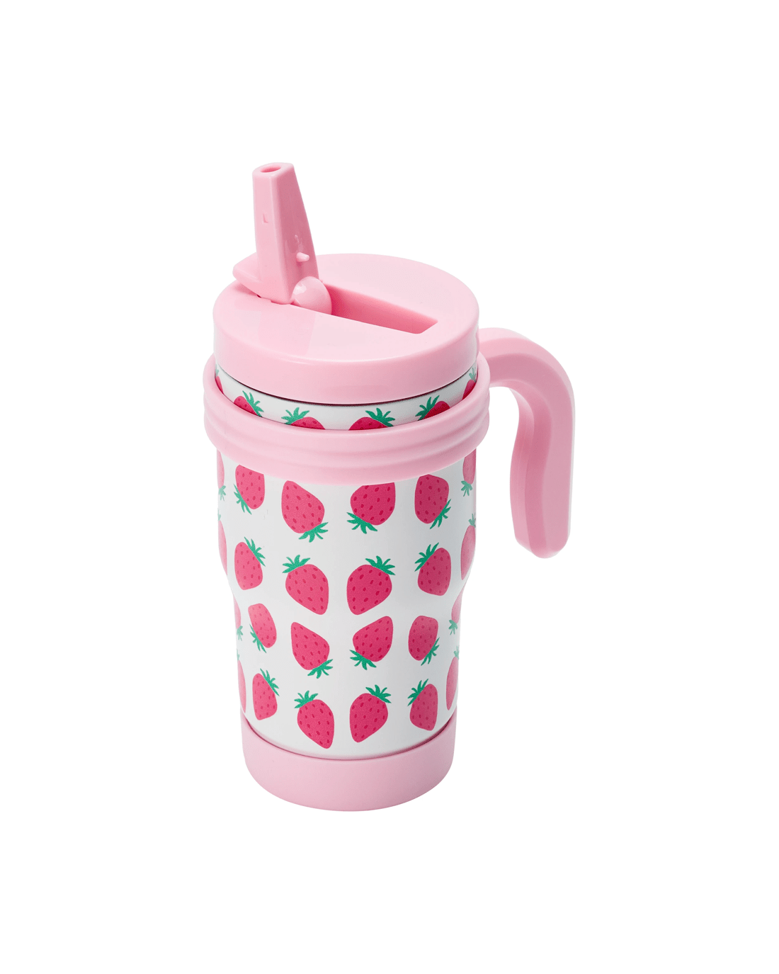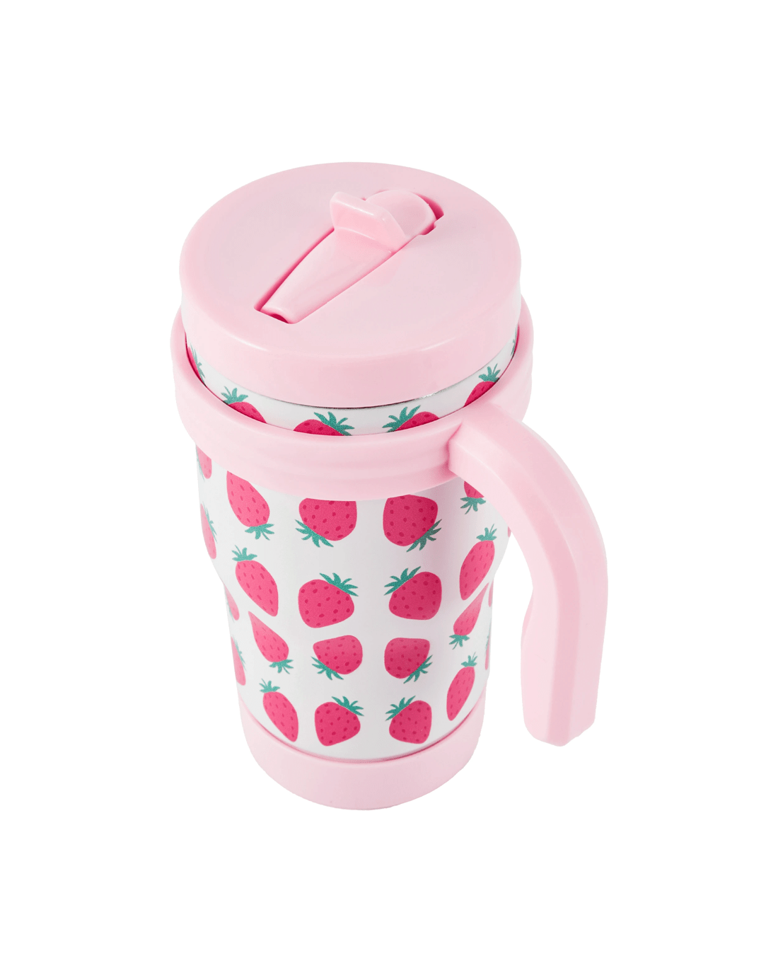 The Strawberry Tumbler with Handle offers a comfortable hold and spill-resistant sipping. It is perfect for coffee, tea or cold drinks throughout the day.