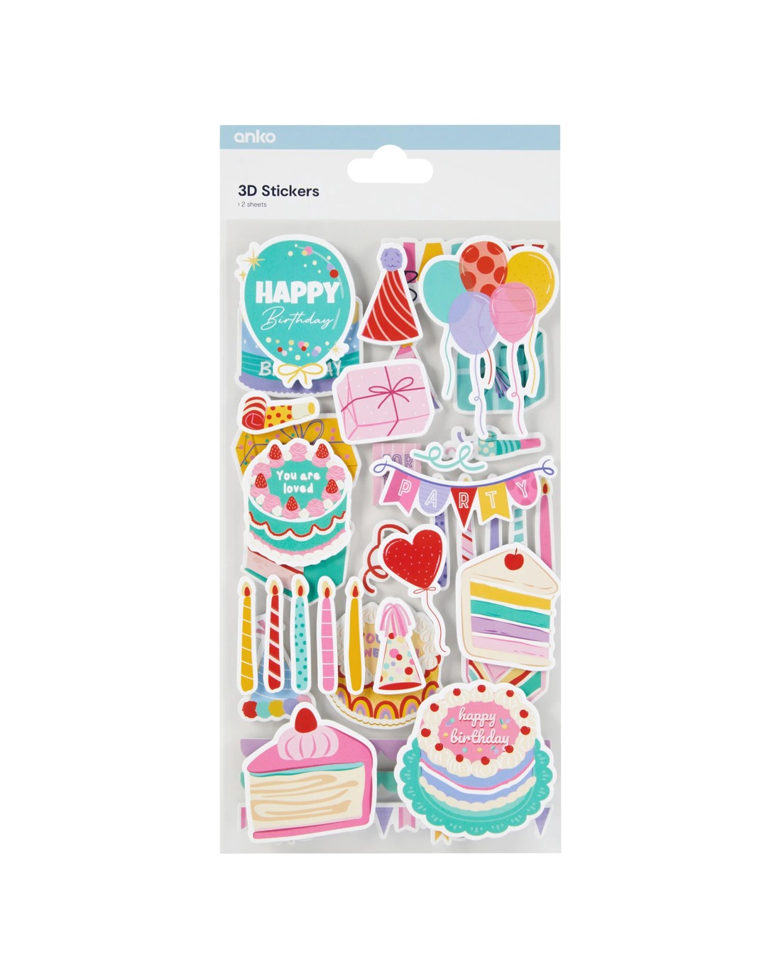 Enjoy crafting with birthday-themed 3D Stickers. The bright, playful designs add fun dimension to handmade cards, gifts and decorations, making celebrations extra joyful.
