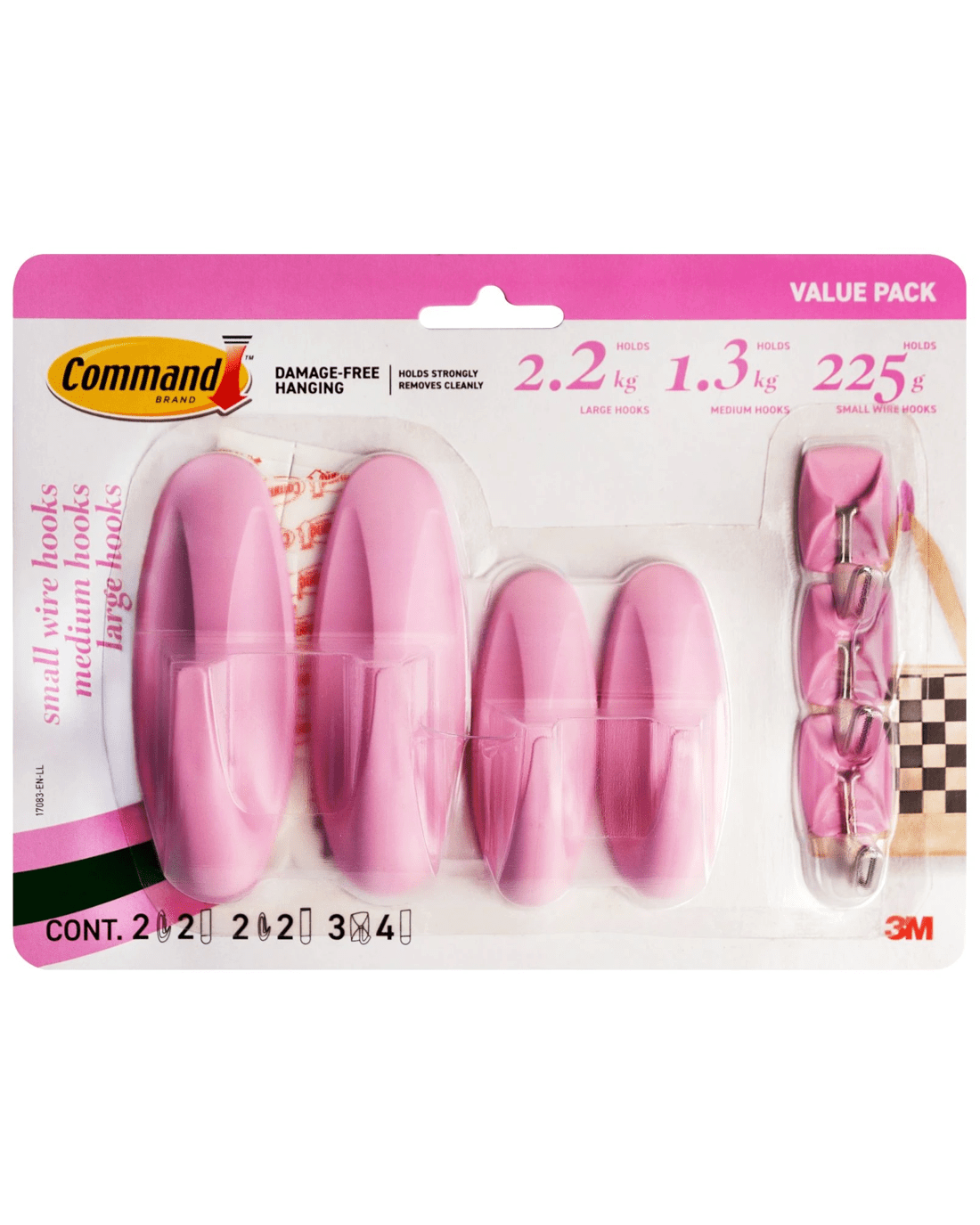 • Includes 2 x large hooks, 2 x medium hooks and 3 x small wire hooks