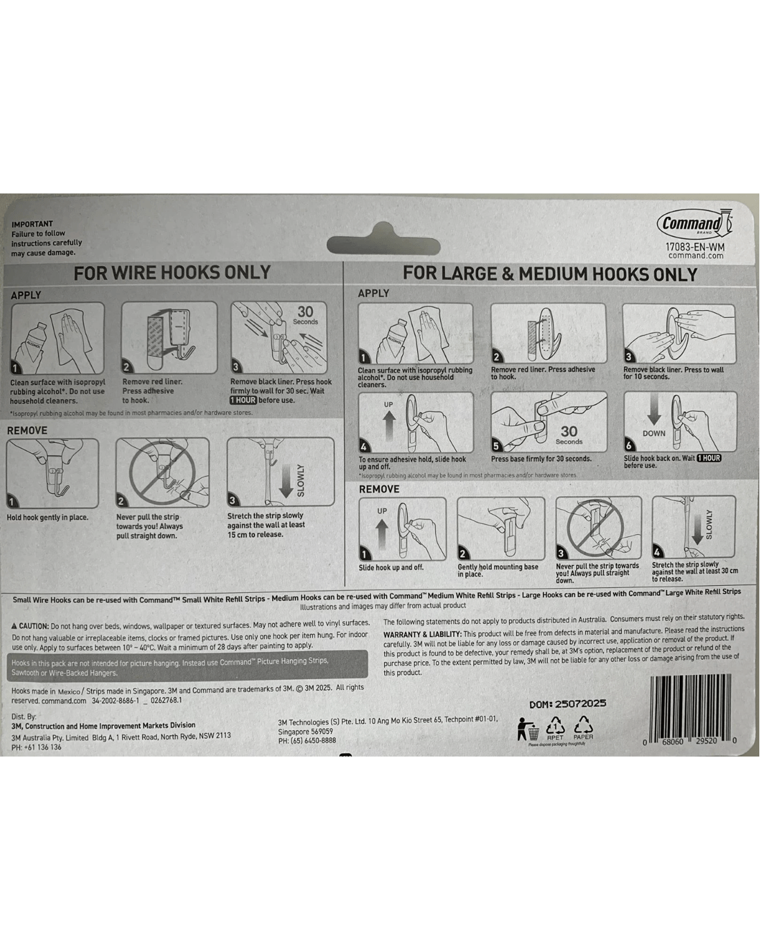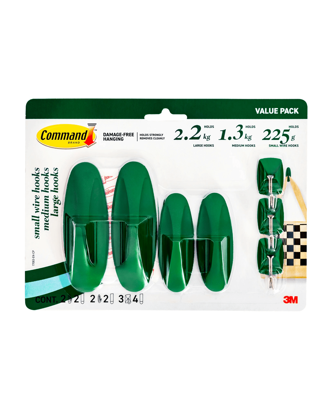 The Command Back to School 2026 Colours programme is designed for students moving out of home for the first time or setting up their spaces for the new school year. Offering fun, engaging and limited-time offerings of colourful Command hooks. The colour palette, inspired by the emerging design trend 'Retrofitted', will be available exclusively for Back to school 2026. Pack contains lare hooks, medium hooks and small wire hooks which provide damage-free hanging solutions which hold strongly and are easily removed.