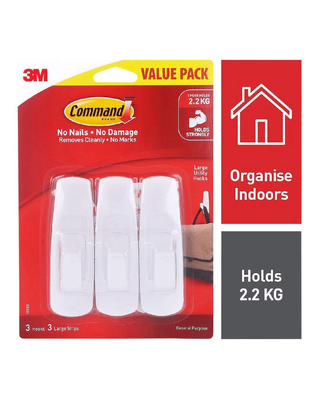 - There are 3 large hooks in this pack.