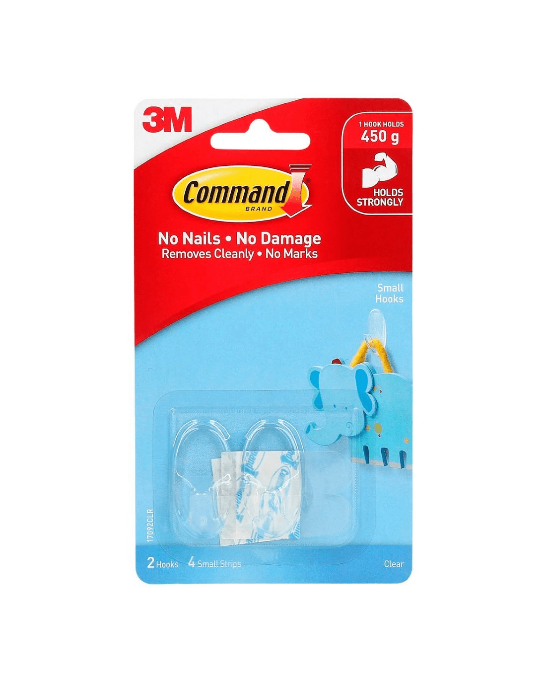 3M Command Clear Small Hooks allow the focus to stay on what you are hanging, not the hook thanks to their clear design. Each hook holds up to 450 g and will remove cleanly if you change your mind.