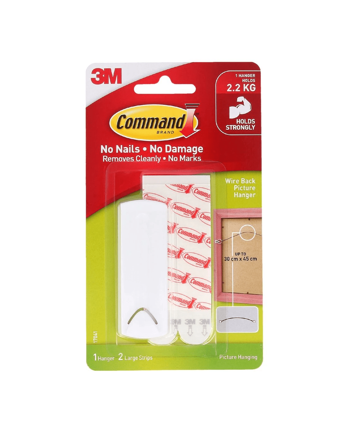 The 3M Command Wire-Back Picture Hangers are made for hanging frames with wire-back attachments. Each can hold up to 2.2 kg and is recommended for picture frames sized up to 28 x 43cm. They remove cleanly when you're done so you can remove them whenever you like.