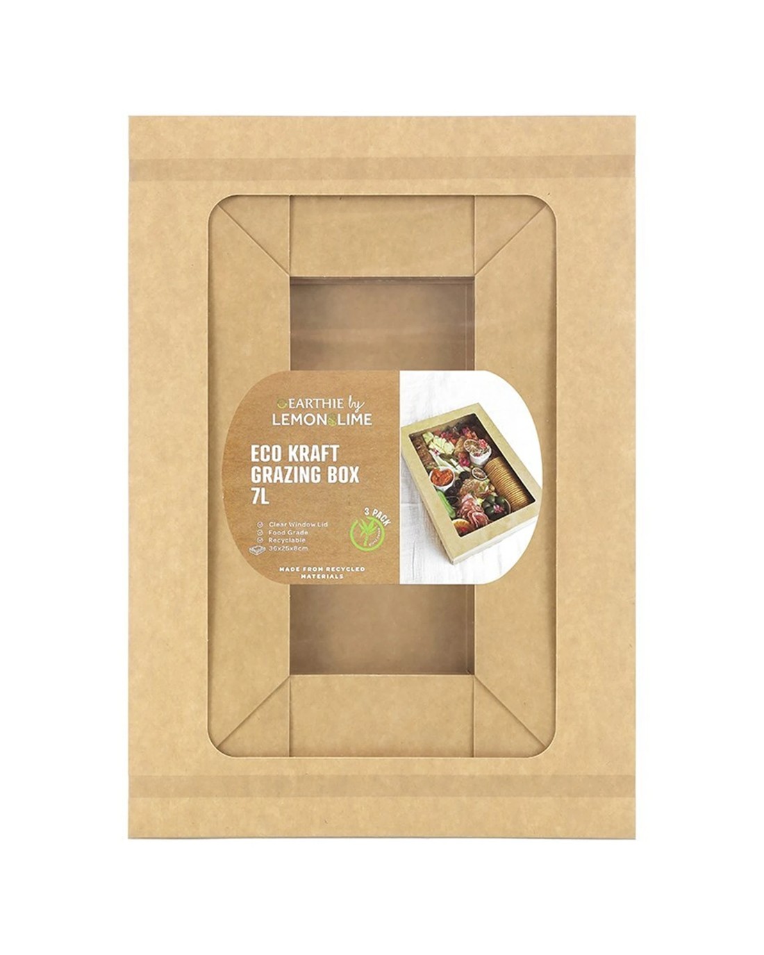 Sold by Discount Party Supplies3pc Lemon And Lime 36cm Eco Kraft Disposable Catering 7l Lidded Grazing Box - Brown