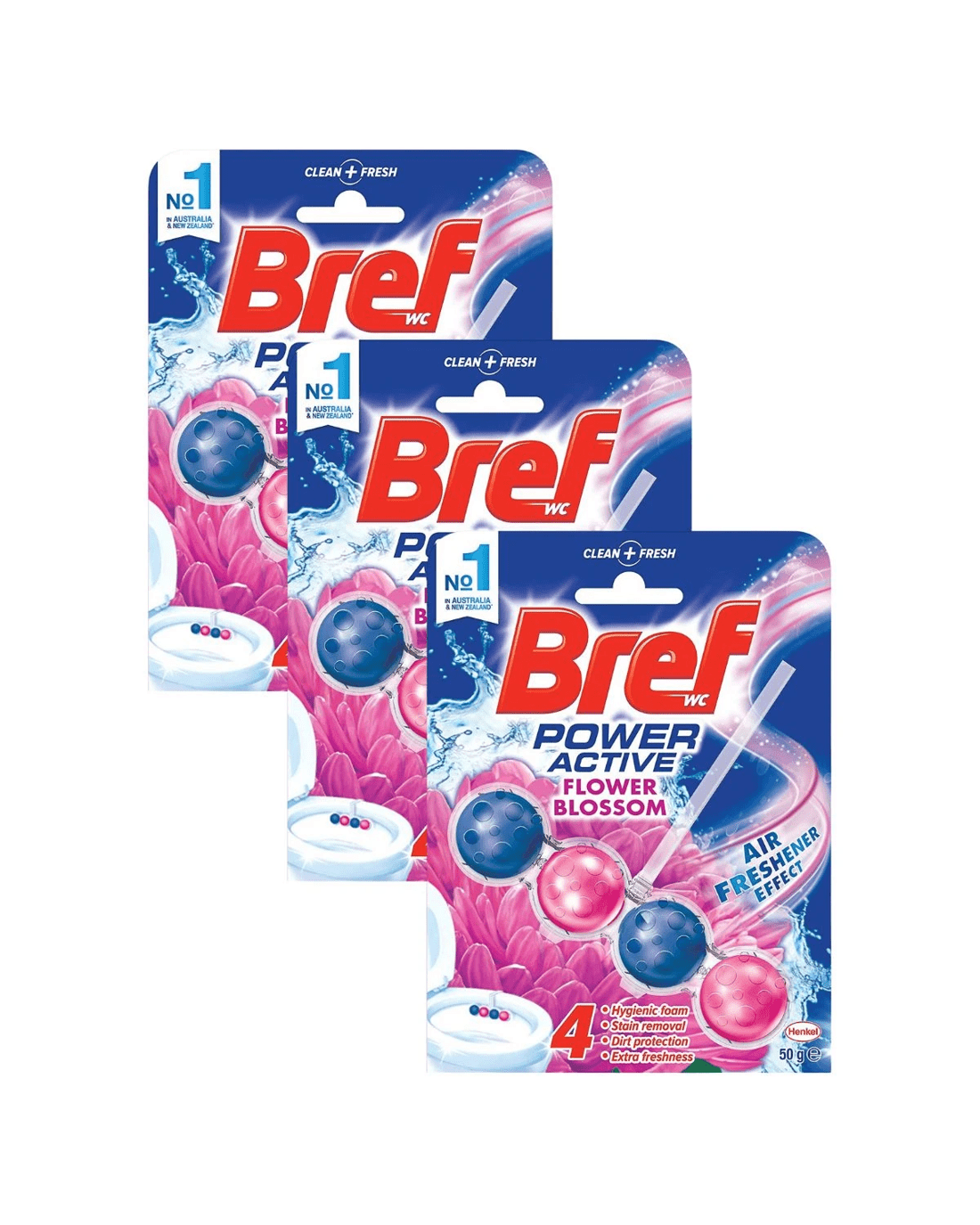 3xBref 50G Toilet Cleaner Cage Power Active 4 Function Formula Flower