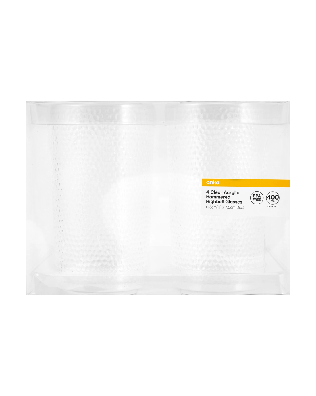 Sold by Kmart4 Clear Acrylic Hammered Highball Glasses