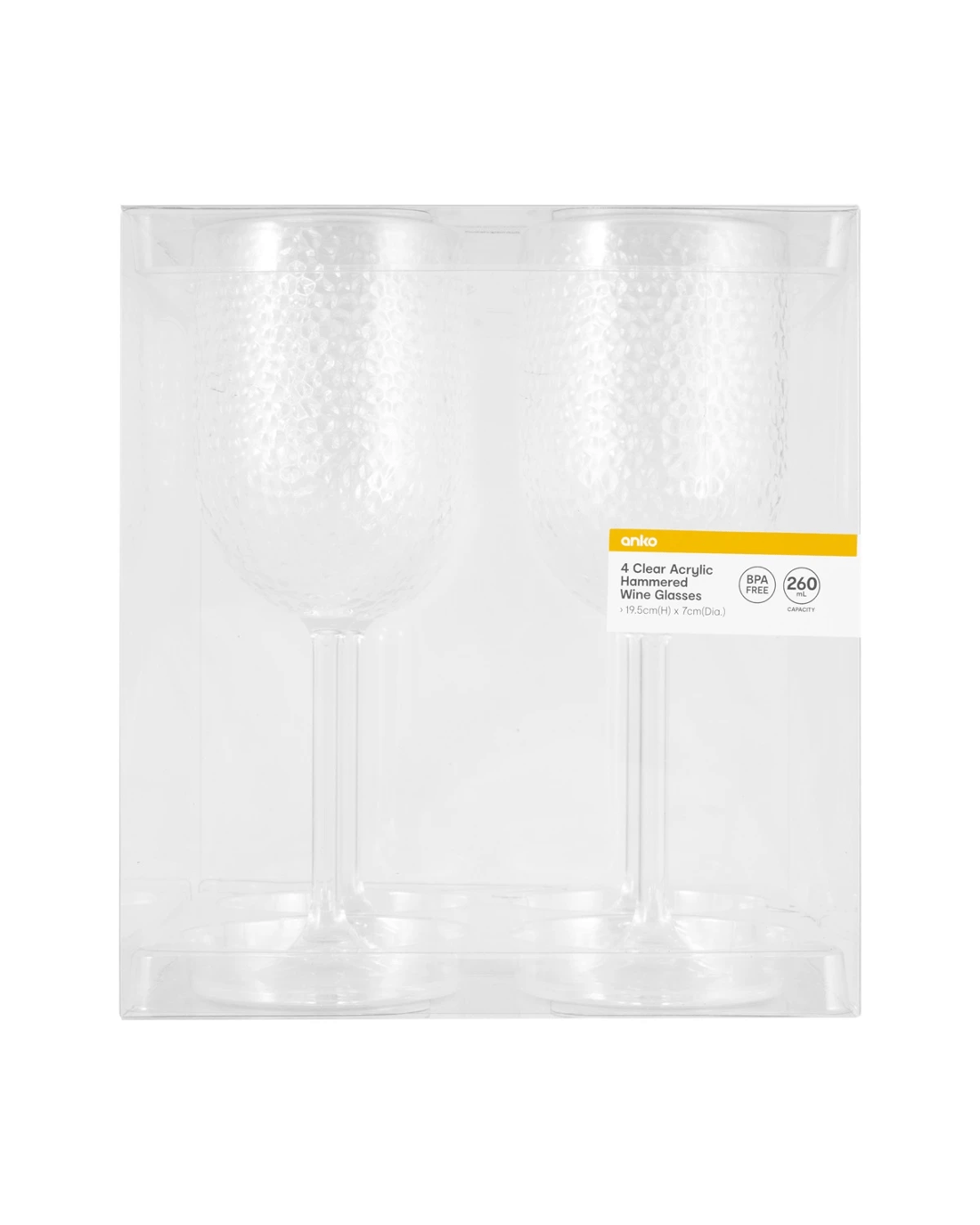 4 Clear Acrylic Hammered Wine Glasses