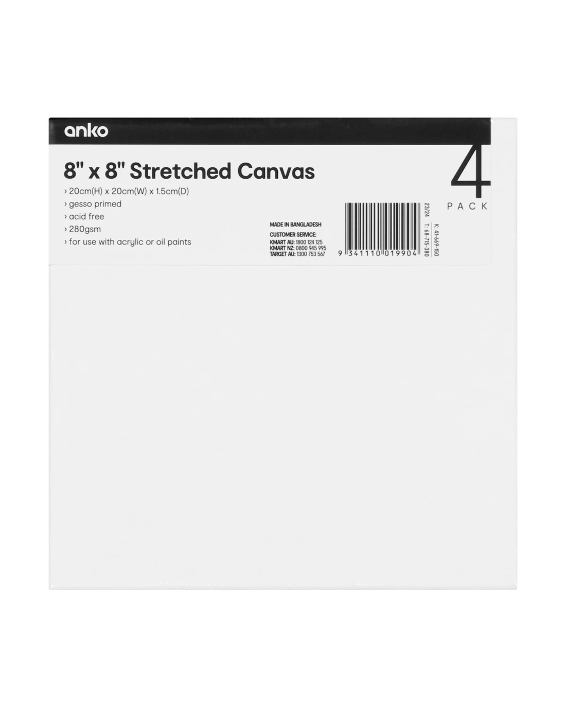 Sold by Kmart8in. x 8in. Stretch Canvas - 4 Pack