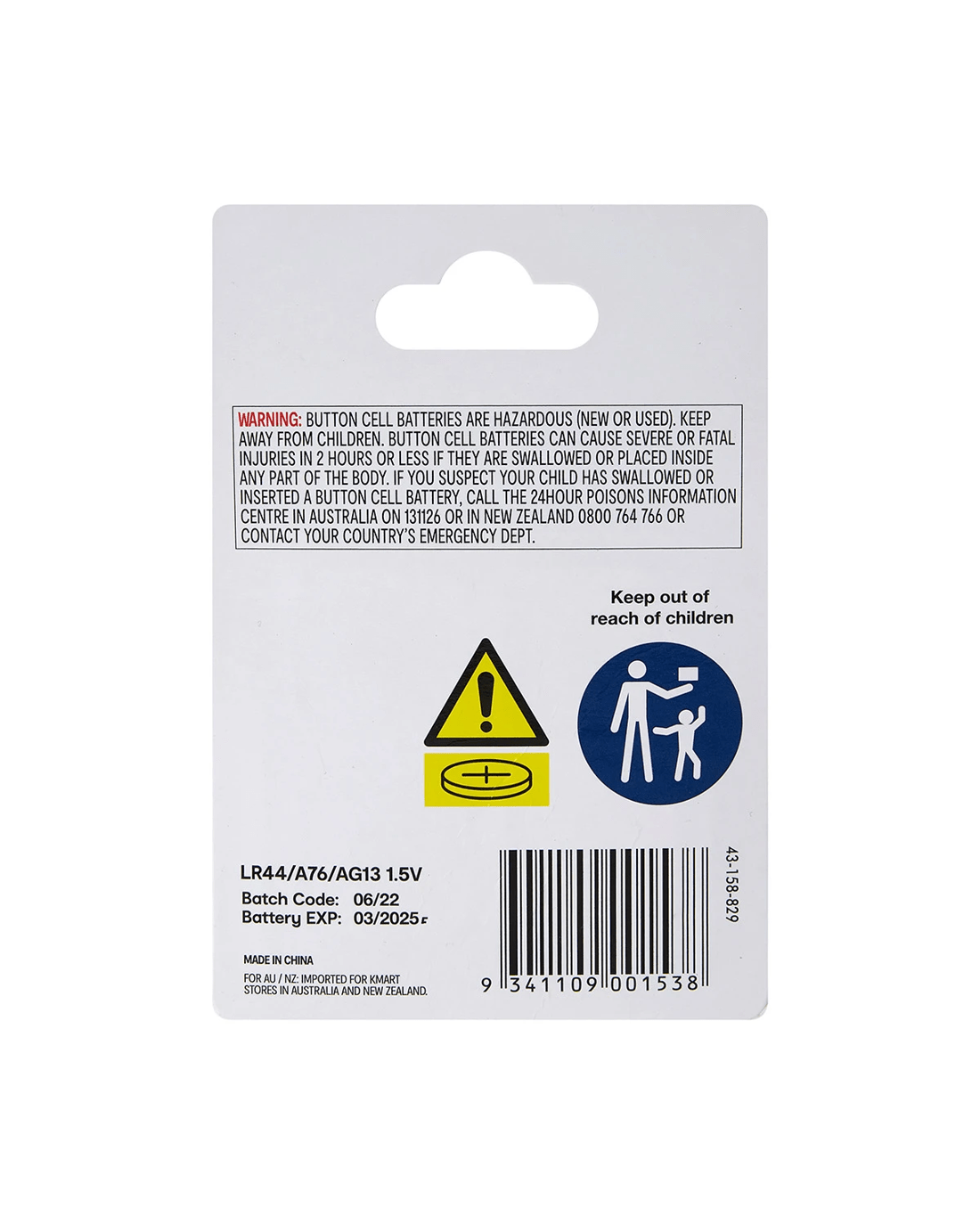Sold by Kmart4 Pack Button Cell Alkaline Batteries - LR44