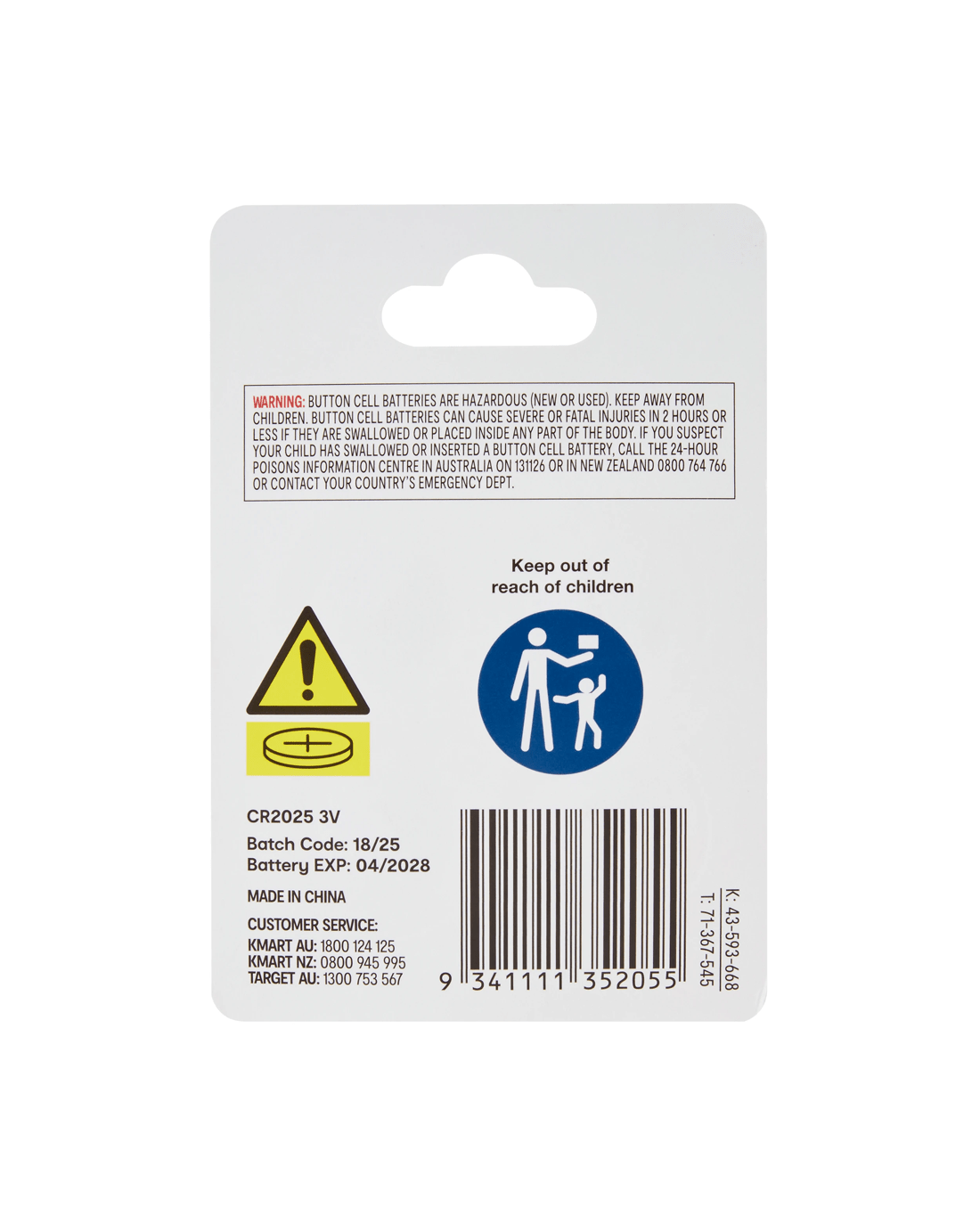 Button Cell Batteries can cause severe or fatal injuries in 2 hours or less if they are swallowed or placed inside any part of the body. If you suspect your child has swallowed or inserted a button cell battery, call the 24-hour Poisons Information Centre in Australia on 131126 or in New Zealand on 0800 764 766 or contact your country's emergency department.