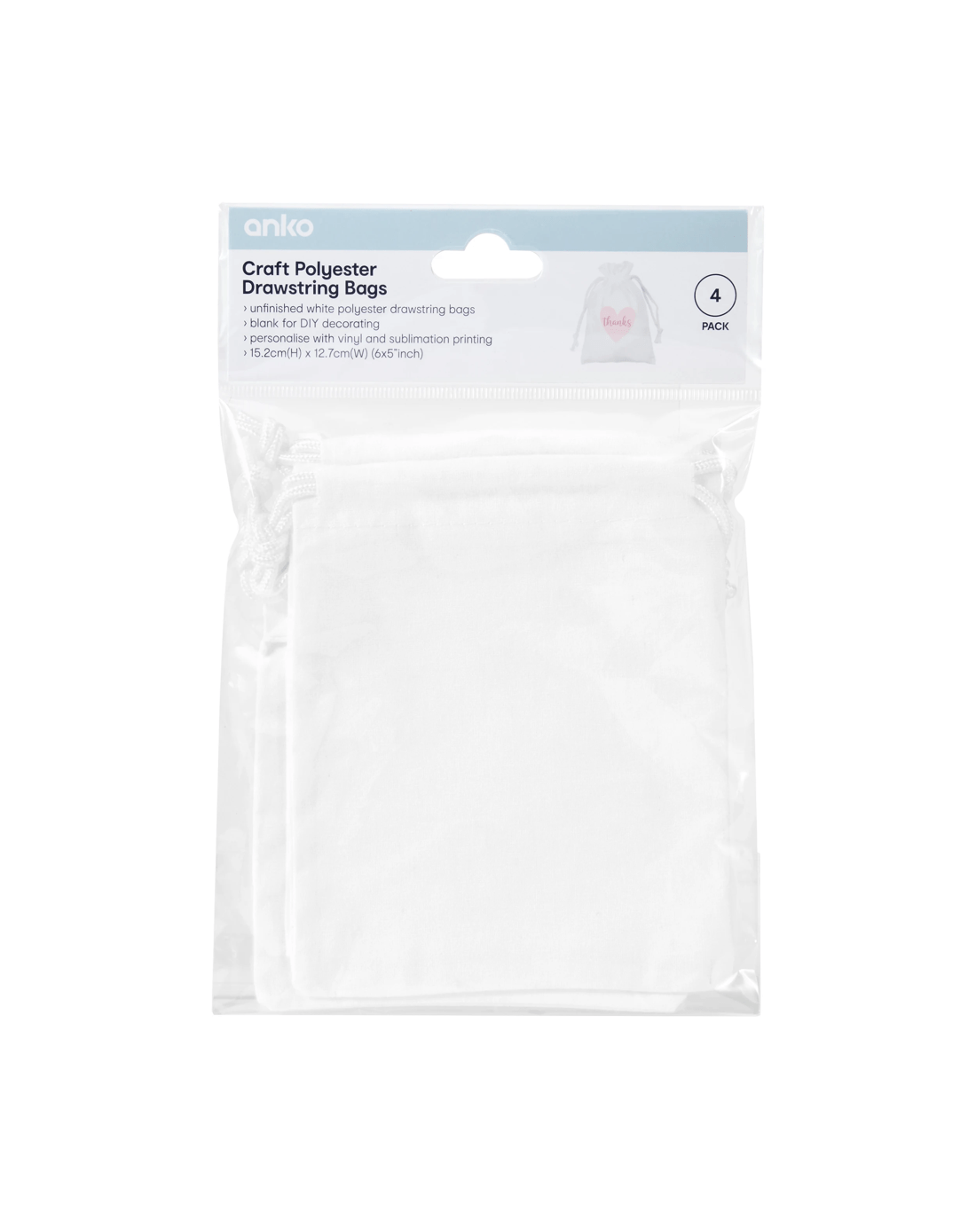 Sold by Kmart4 Pack Craft Polyester Drawstring Bags
