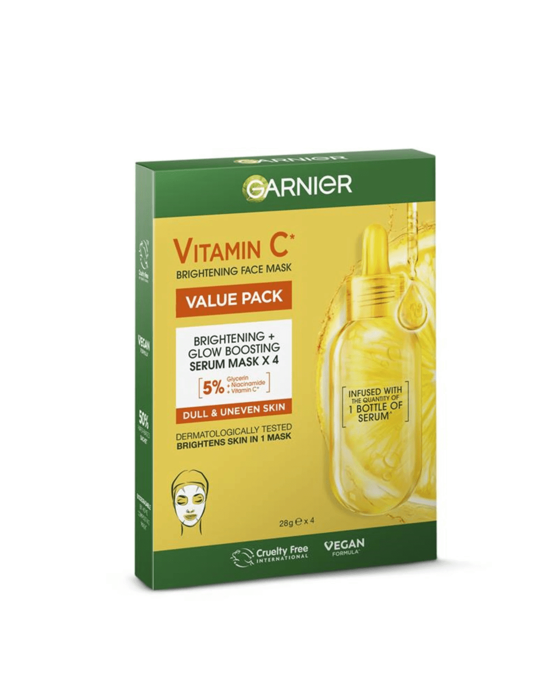Sold by Kmart4 Pack Garnier Vitamin C Brightening Face Mask Value Pack 28g - Glycerin, Niacinamide and Vitamin C