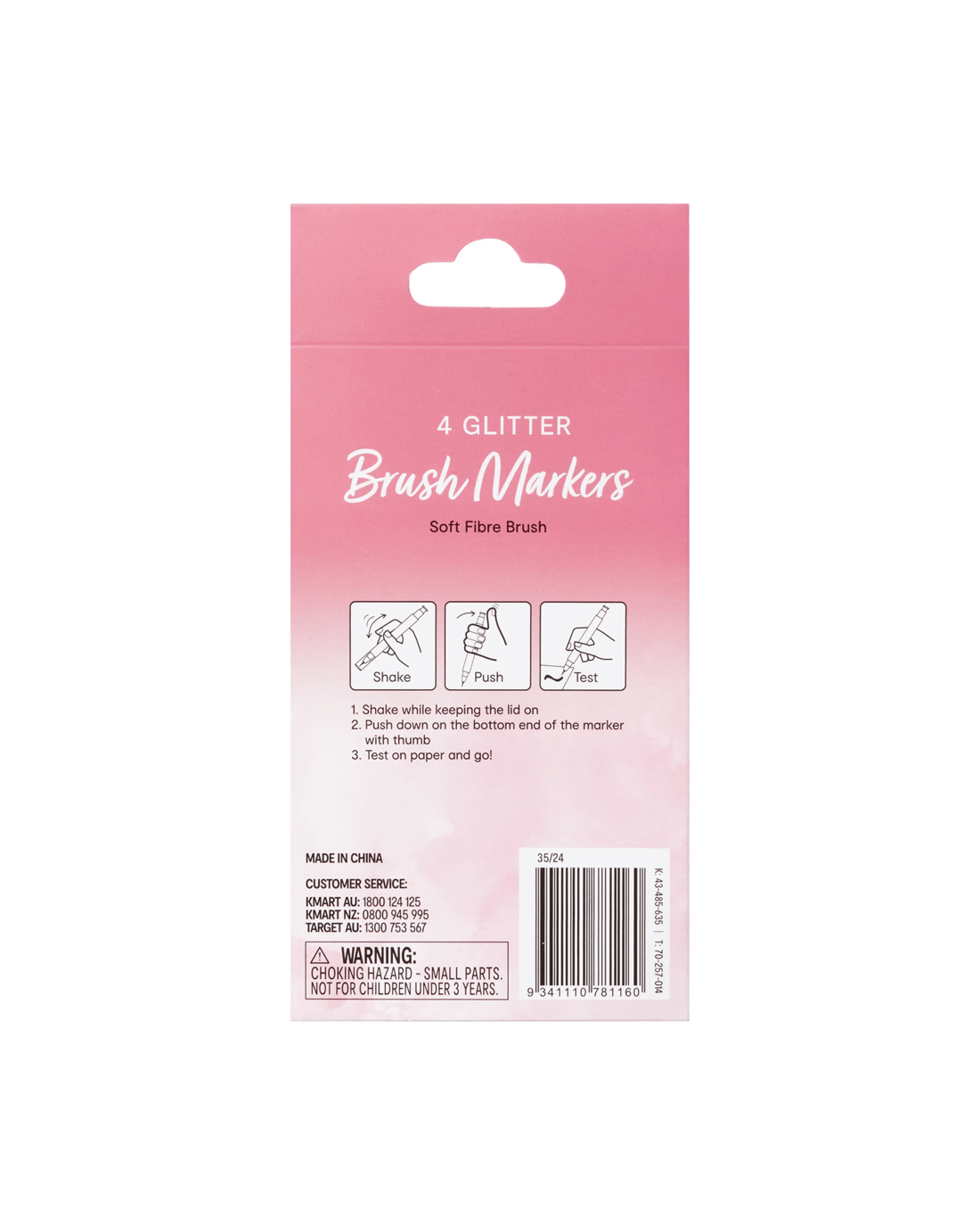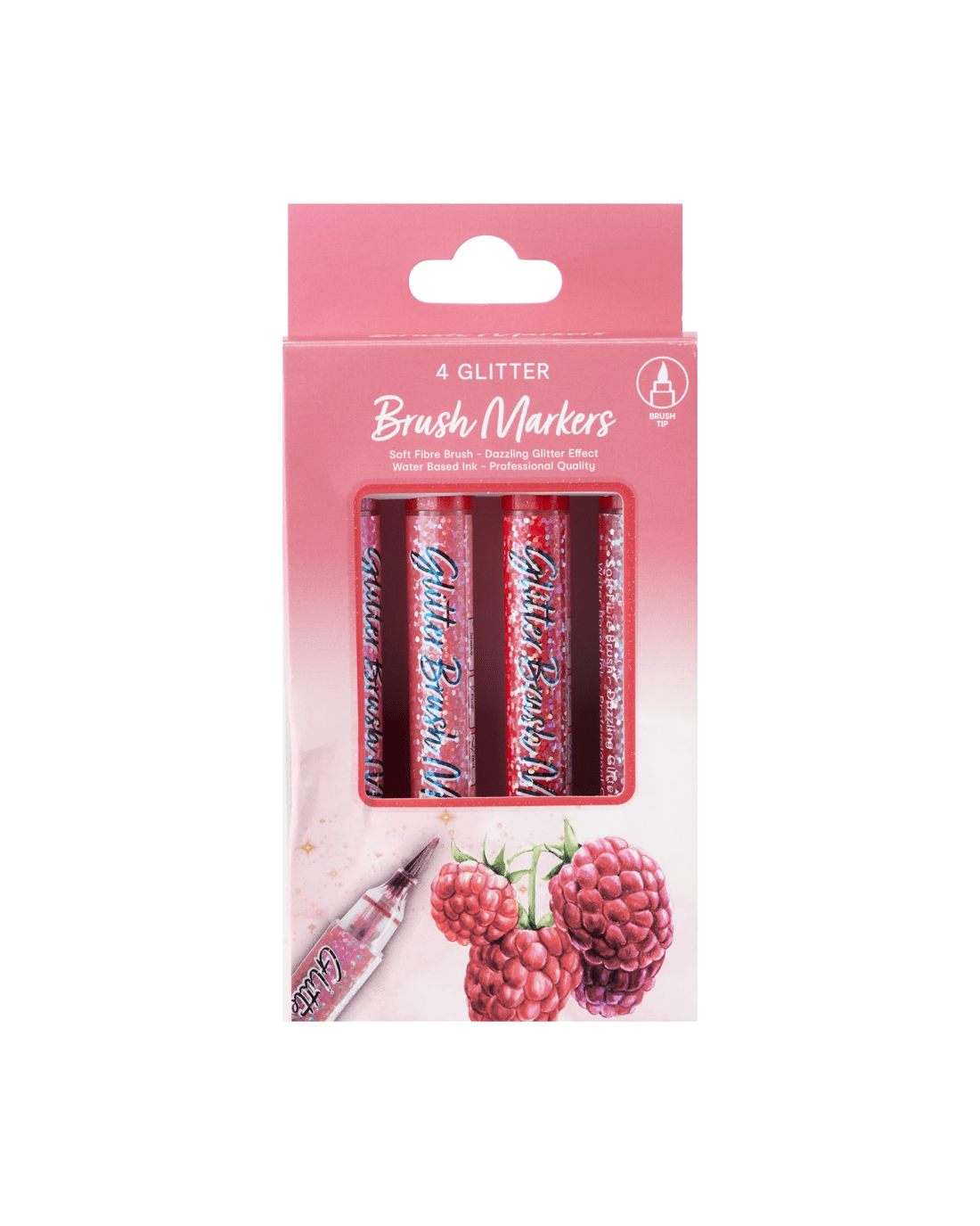 4 Pack Glitter Brush Markers - Pink
