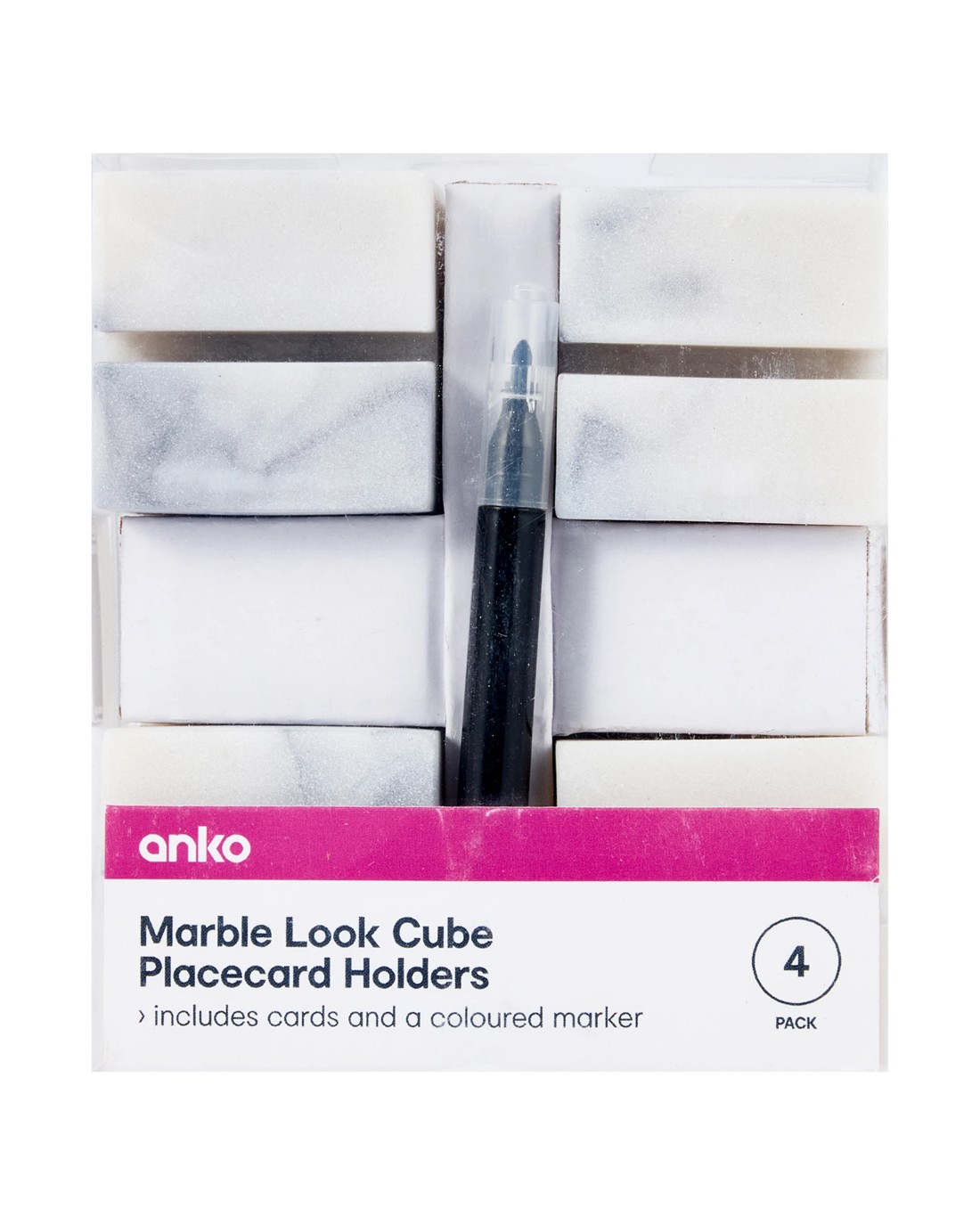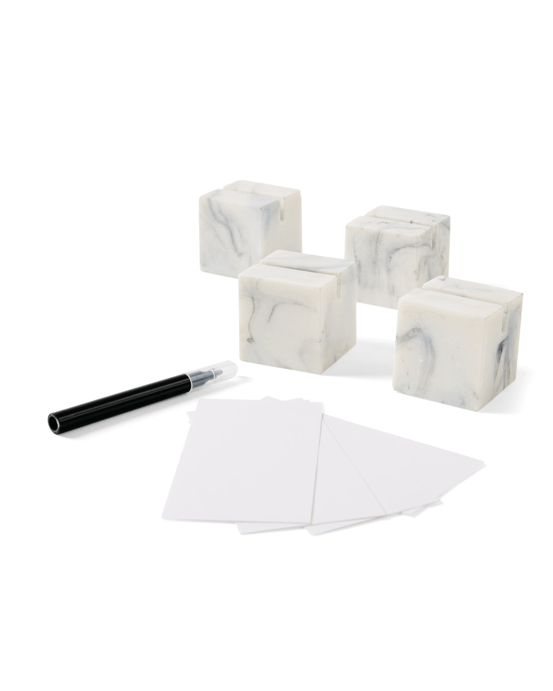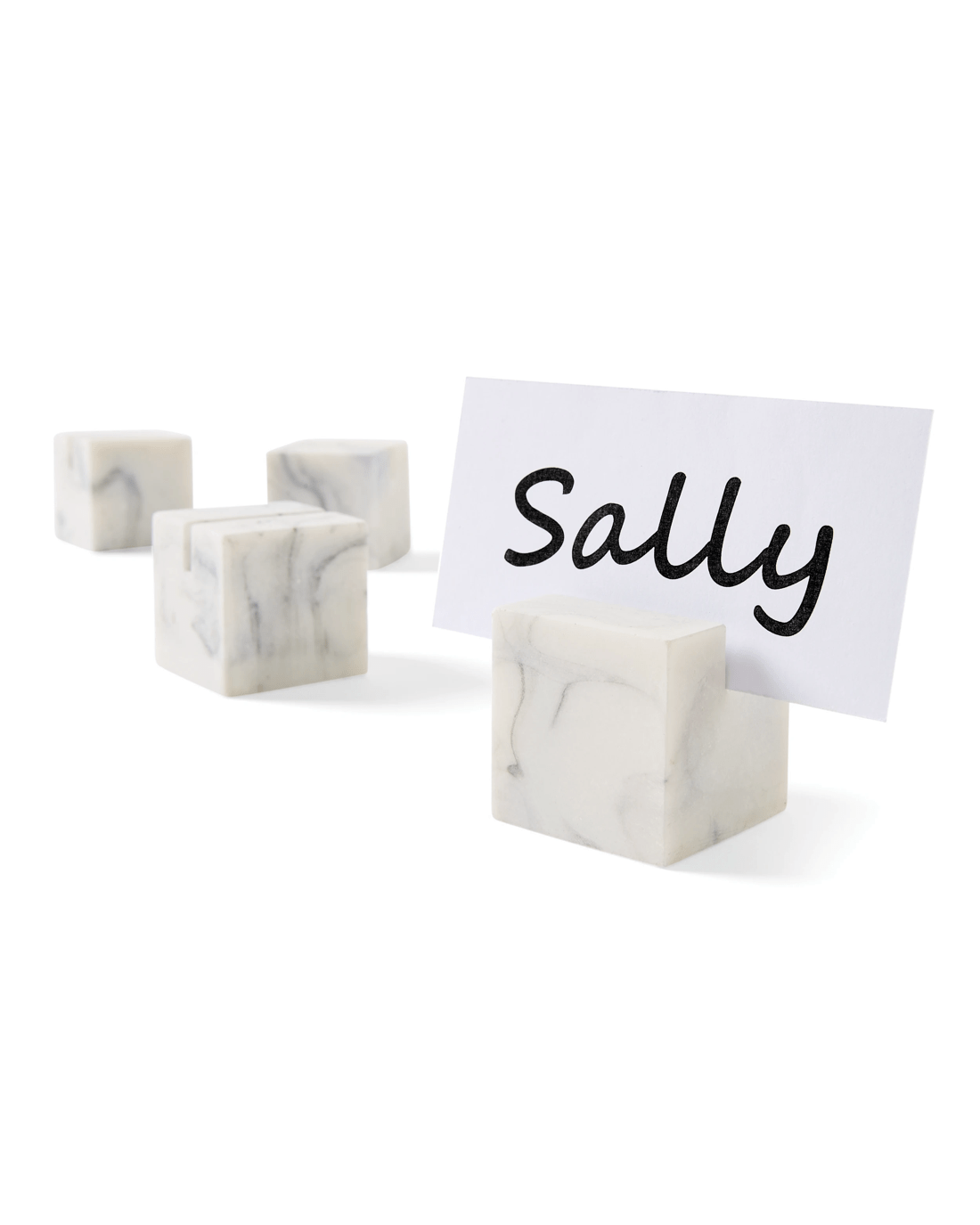 These Marble Look Cube Placecard Holders add a refined touch to your dinner table. Their sleek, modern design is perfect for showcasing guest names with style, making every seat feel special at dinner parties or festive gatherings.