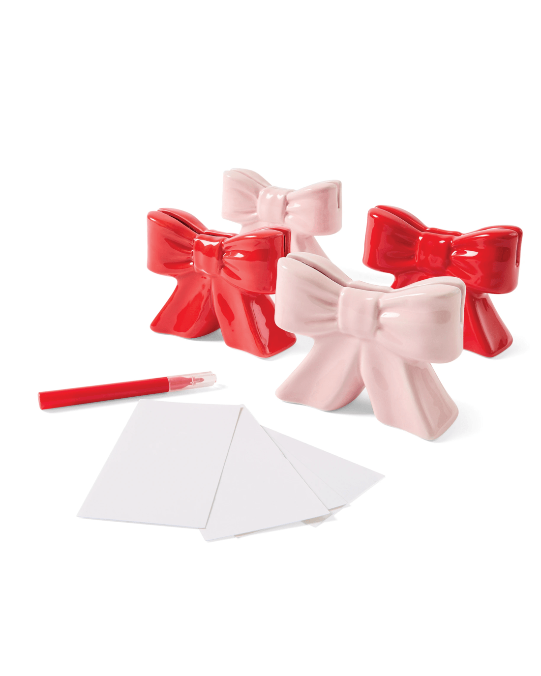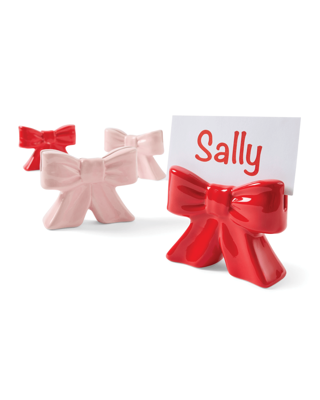 4 Pack Pink and Red Ceramic Bow Placecard Holders