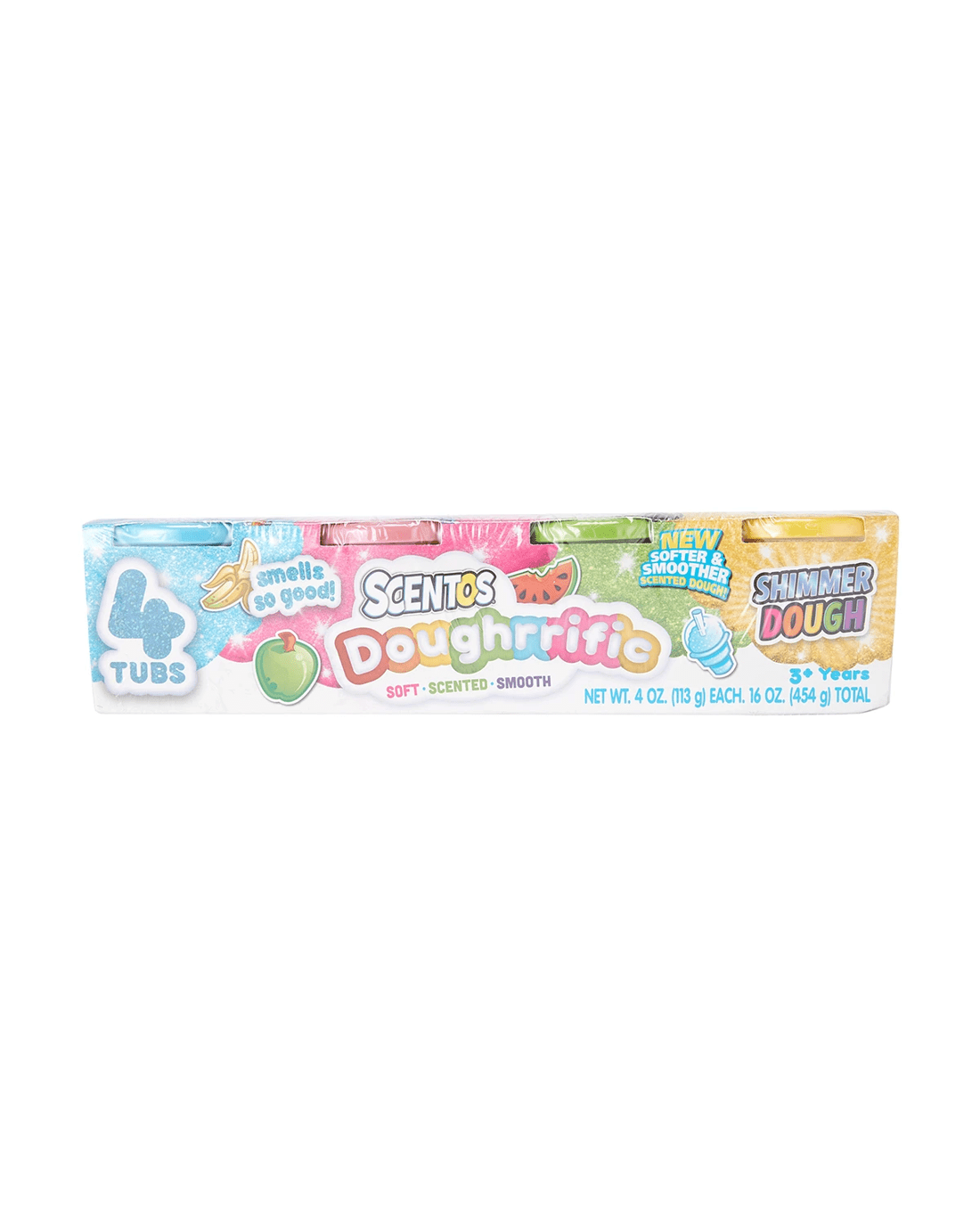Sold by Kmart4 Pack Scentos Doughrrific Shimmer Dough Tubs