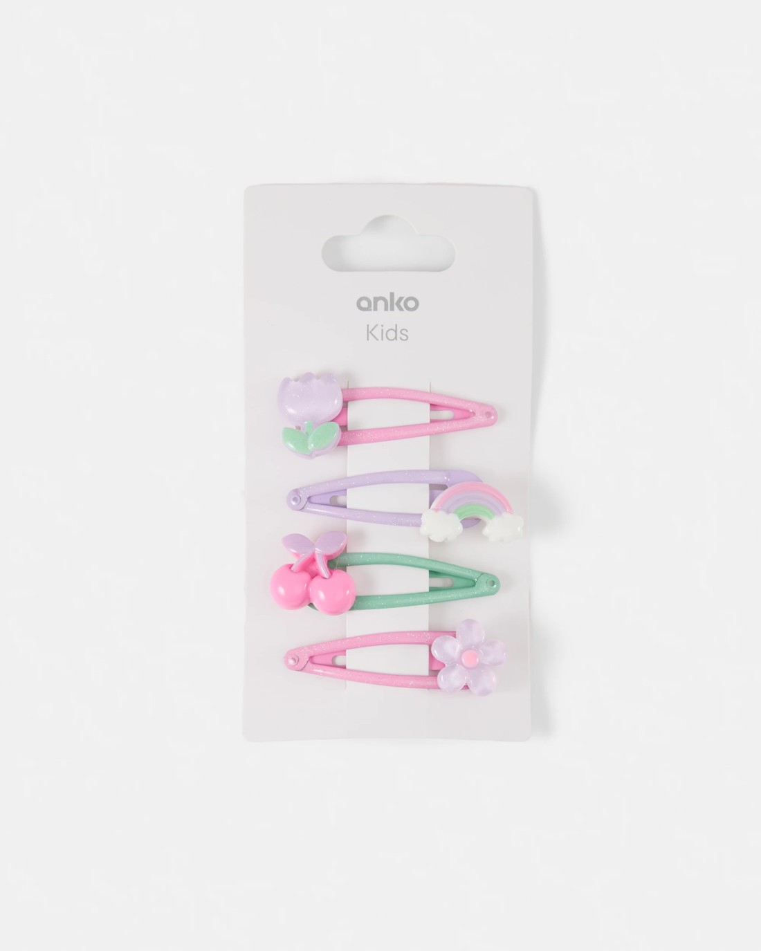 4 Pack Snap Hair Clip - Flower, Rainbow and Cherry