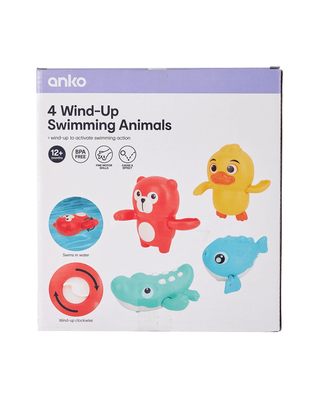 4 Pack Wind-Up Swimming Toys