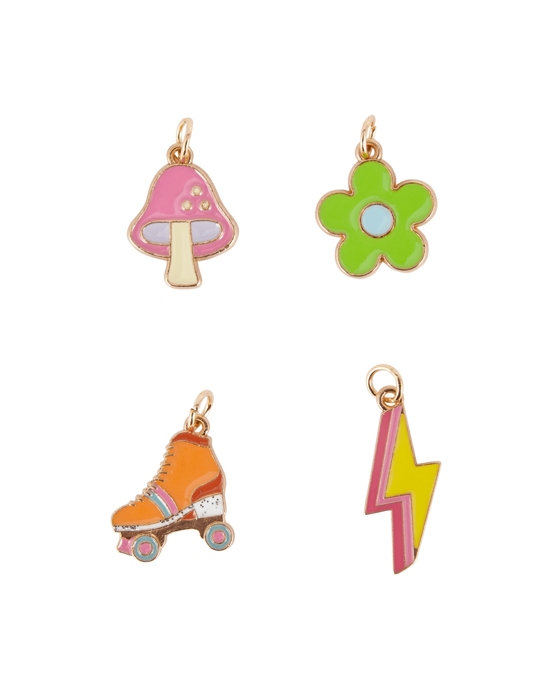 • Retro lightning bolt, flower, mushroom and rollerskate design