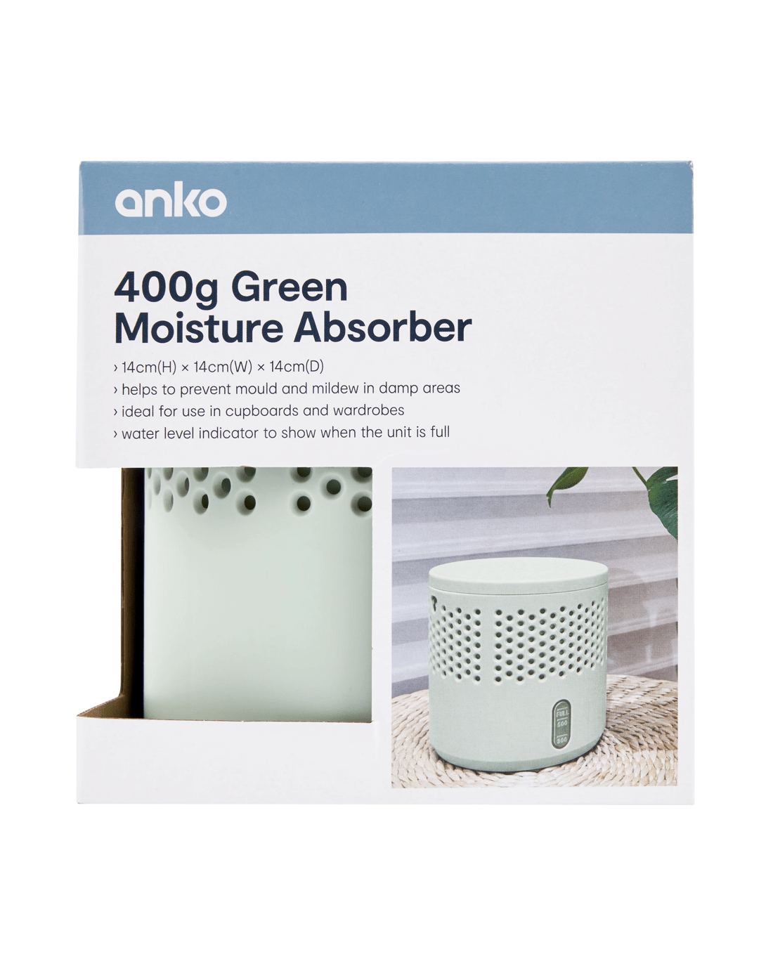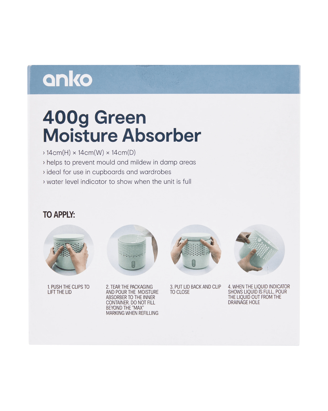 Use the 400g Green Moisture Absorber to help manage moisture in small spaces like cupboards, closets or storage areas with ease.