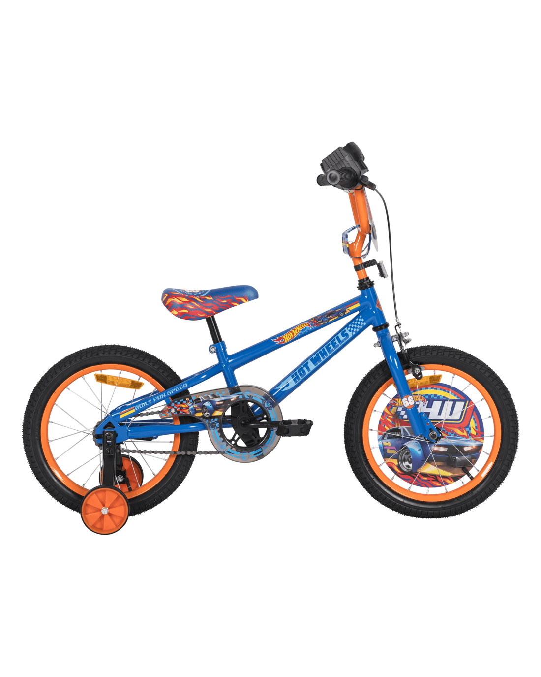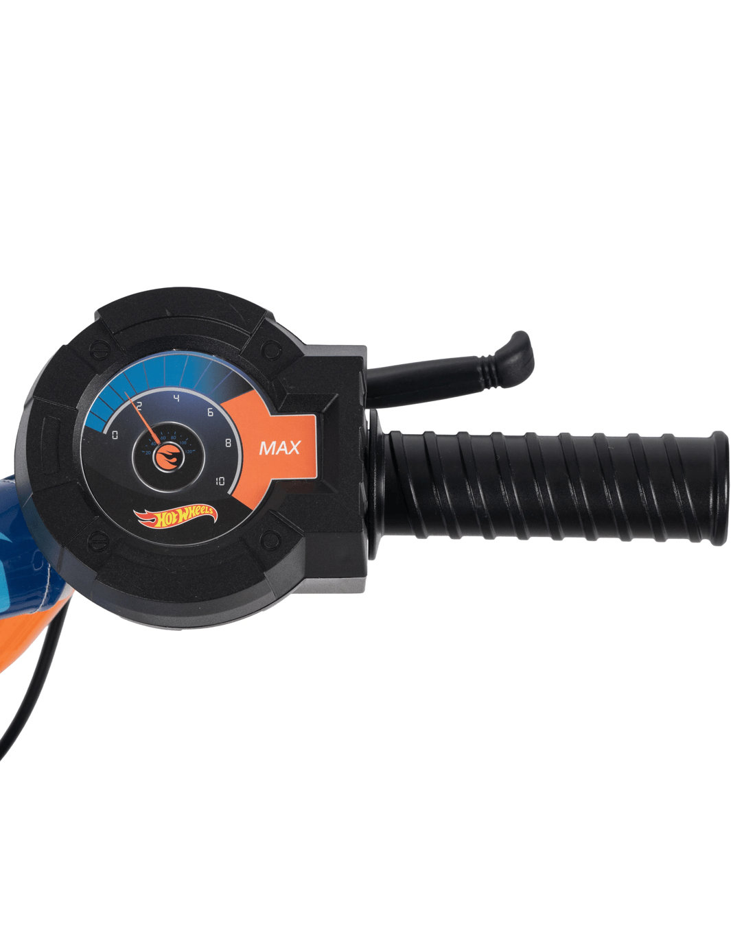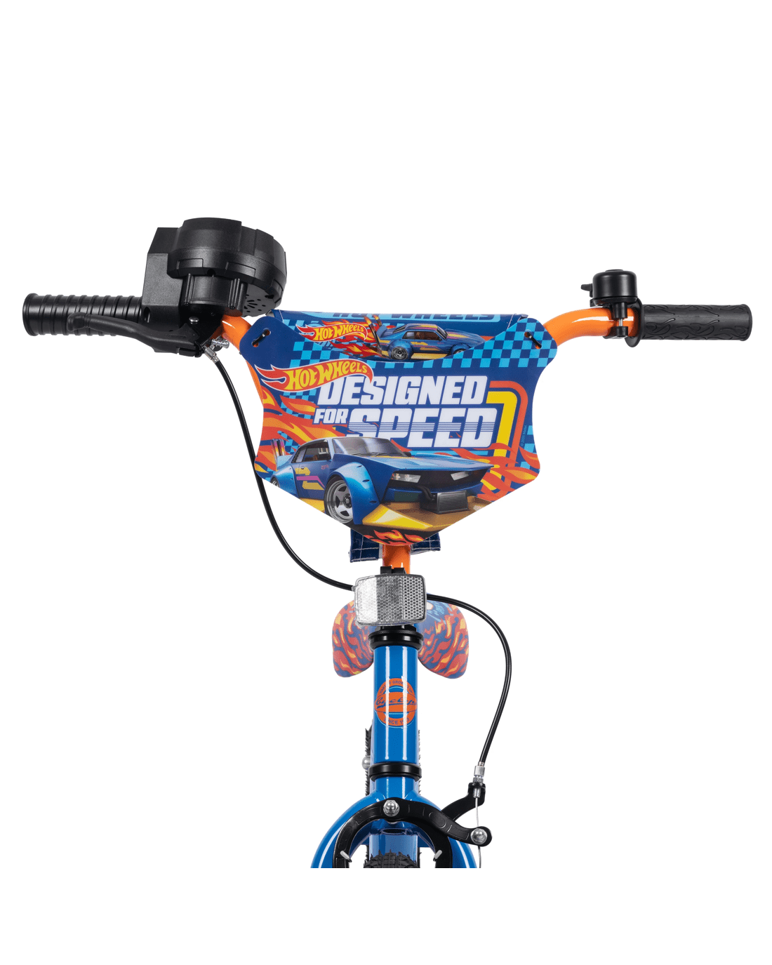 This 40cm Hot Wheels Bike with Rev Grip is the ultimate set of wheels for the young thrill-seeker. Sporting classic orange and blue colours inspired by the iconic Hot Wheels brand, this bike will surely excite any fan. Built with a sturdy steel frame, this bike includes front and rear brakes for sure stopping power. Also includes removable training wheels to allow your child to easily ride and explore. The highlight is the cool Rev Grip, which allows your child to rev up their engines so they feel like they're racing down the track.