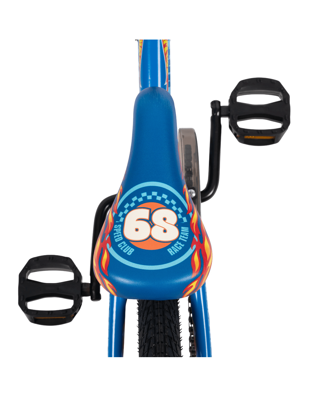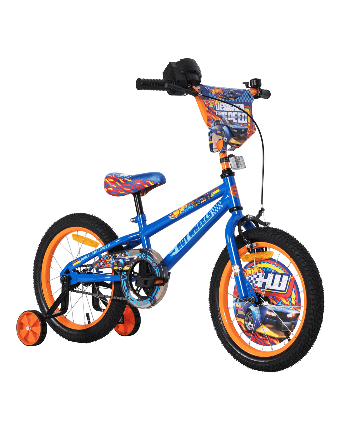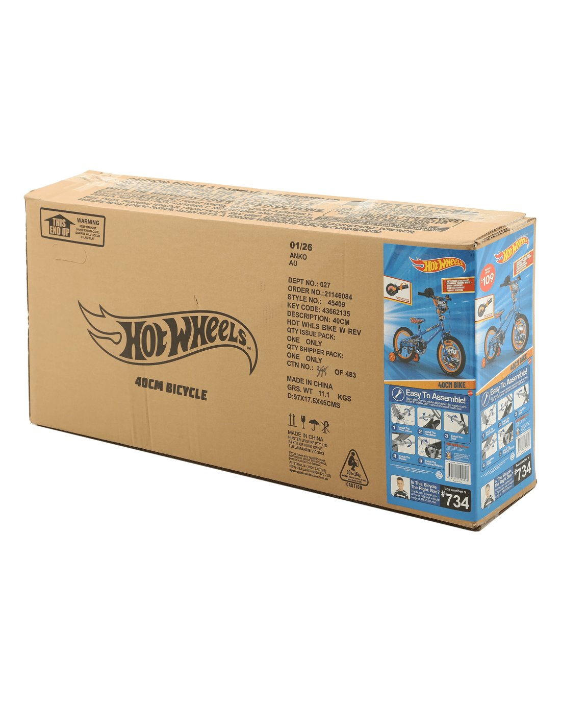 This 40cm Hot Wheels Bike with Rev Grip is the ultimate set of wheels for the young thrill-seeker. Sporting classic orange and blue colours inspired by the iconic Hot Wheels brand, this bike will surely excite any fan. Built with a sturdy steel frame, this bike includes front and rear brakes for sure stopping power. Also includes removable training wheels to allow your child to easily ride and explore. The highlight is the cool Rev Grip, which allows your child to rev up their engines so they feel like they're racing down the track.
