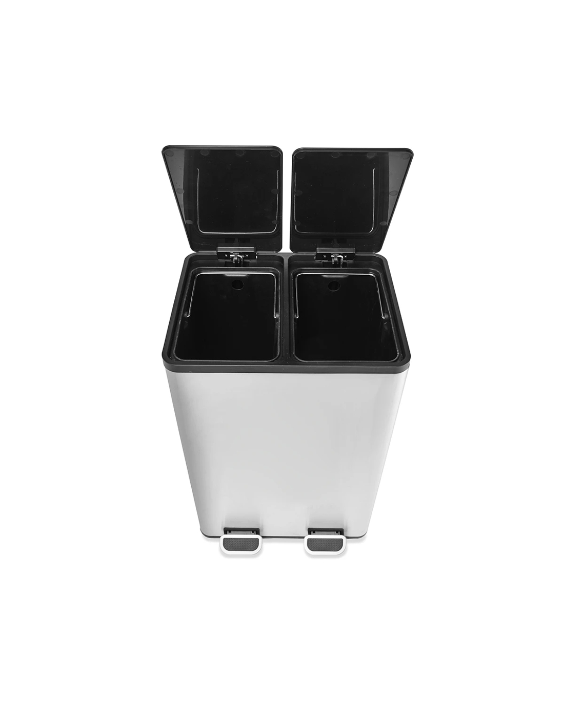 Hands-Free Pedal Access: A foot-operated pedal mechanism offers convenient, hygienic access to both compartments without needing to touch the lid.