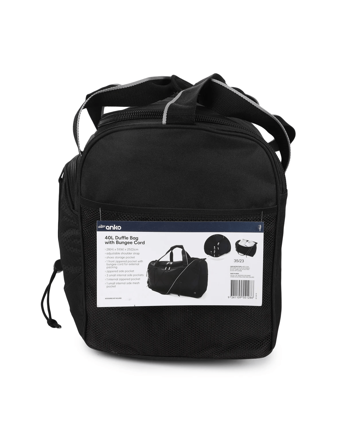 40L Duffle Bag with Bungee Cord - Black