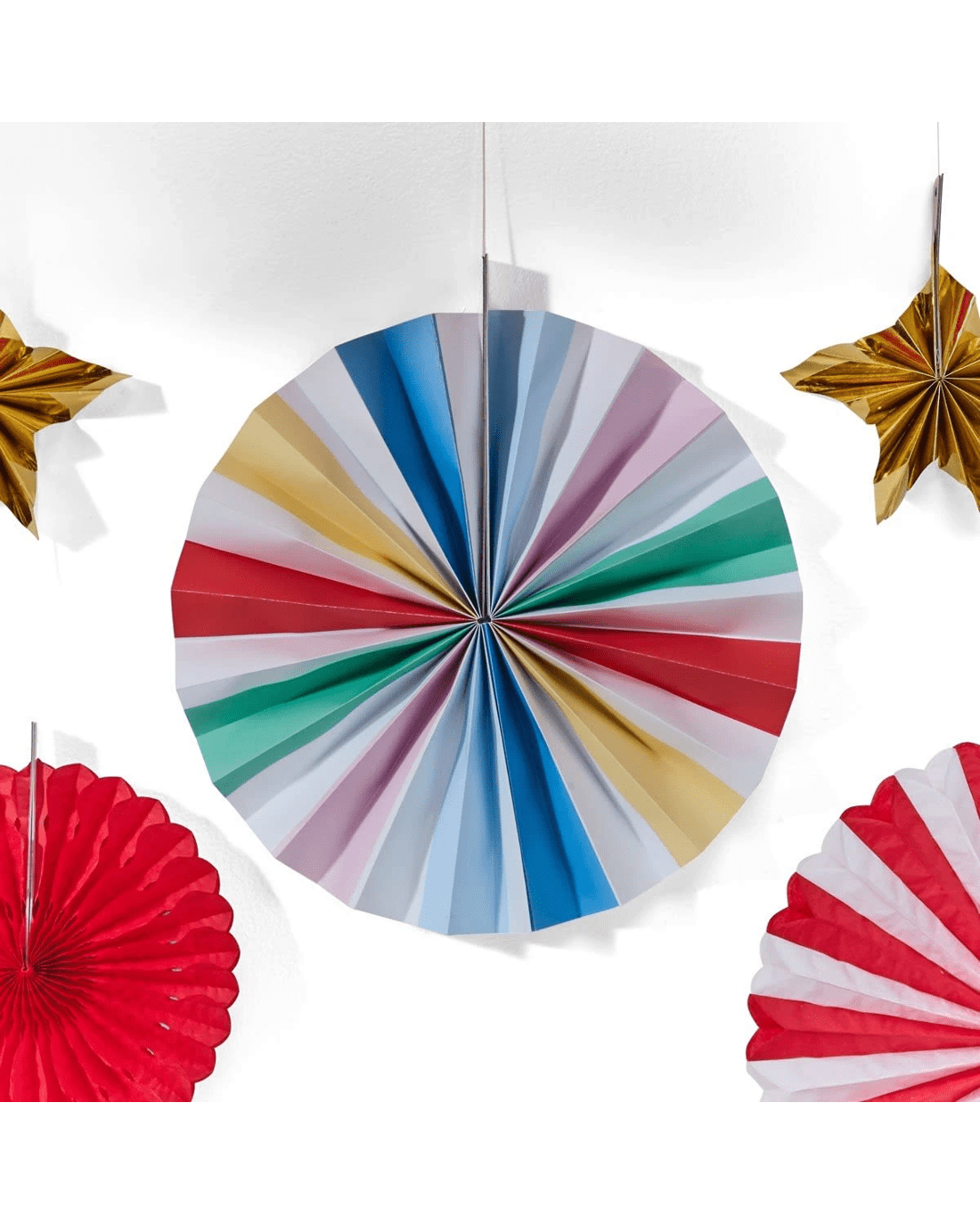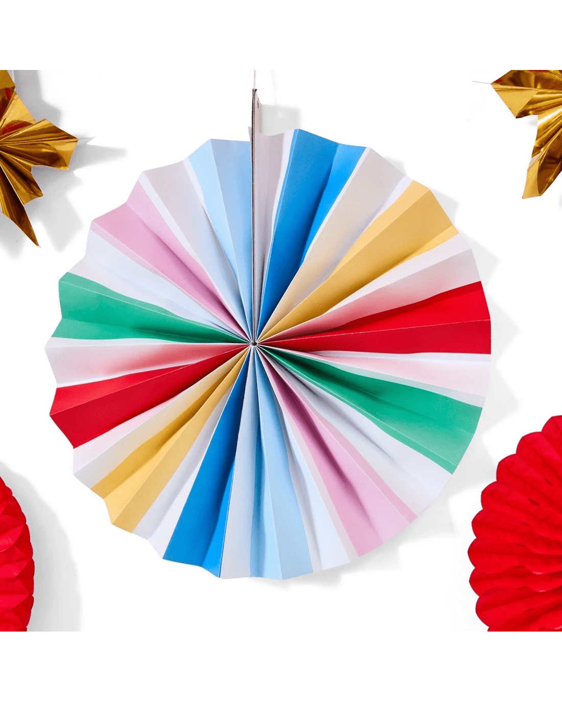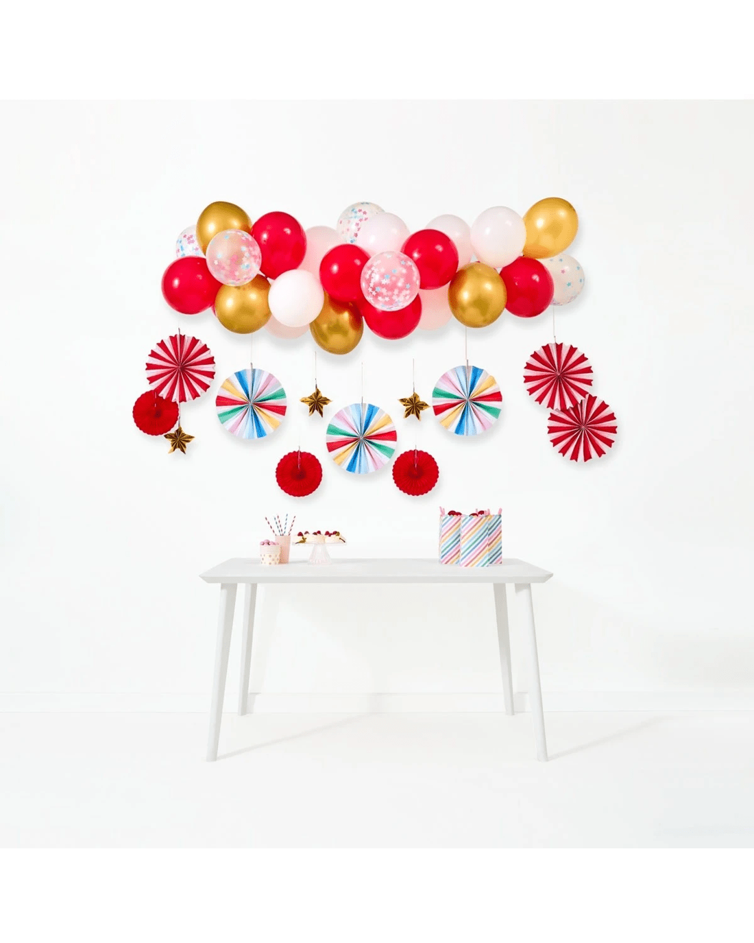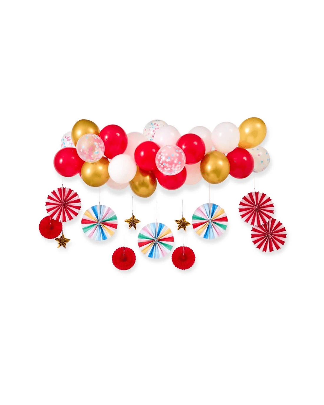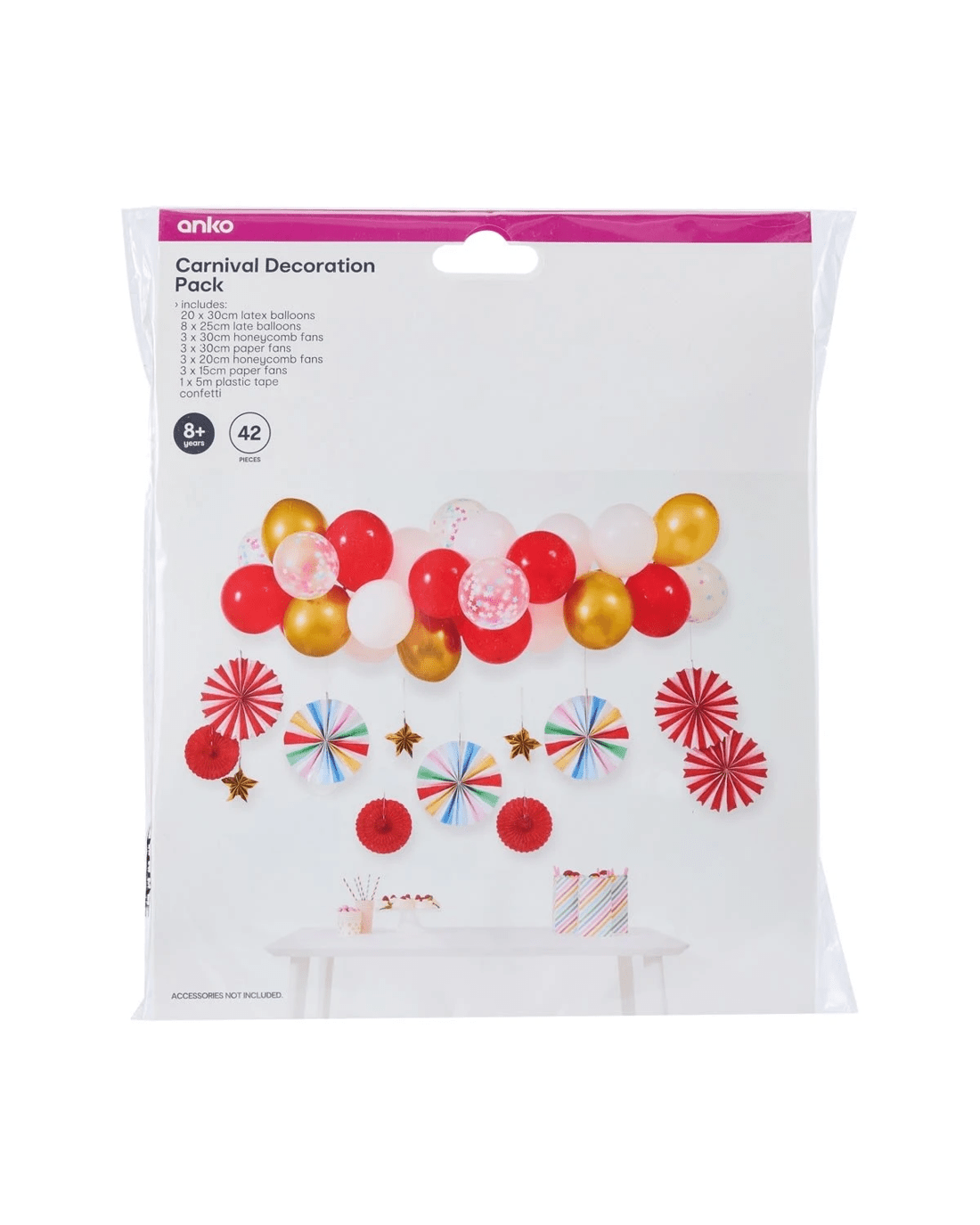 • Includes 1 x plastic tape, 3 x small paper fans, 3 x large paper fans, 3 x small honeycomb fans, 3 x large honeycomb fans, 20 x large latex balloons, 8 x small latex balloons and confetti