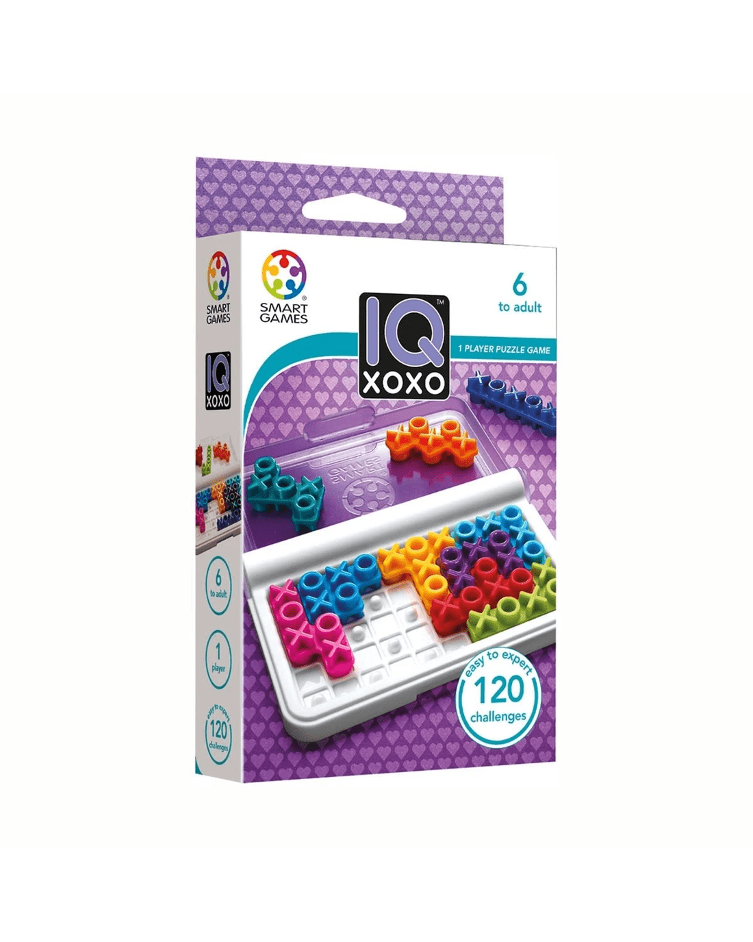 Smart Games IQ XOXO, a travel Game for kids and adults, a brain teaser for ages 6 & up. With 120 challenges, kids are sure to find a puzzle that tests them and pushes them to think outside the box.