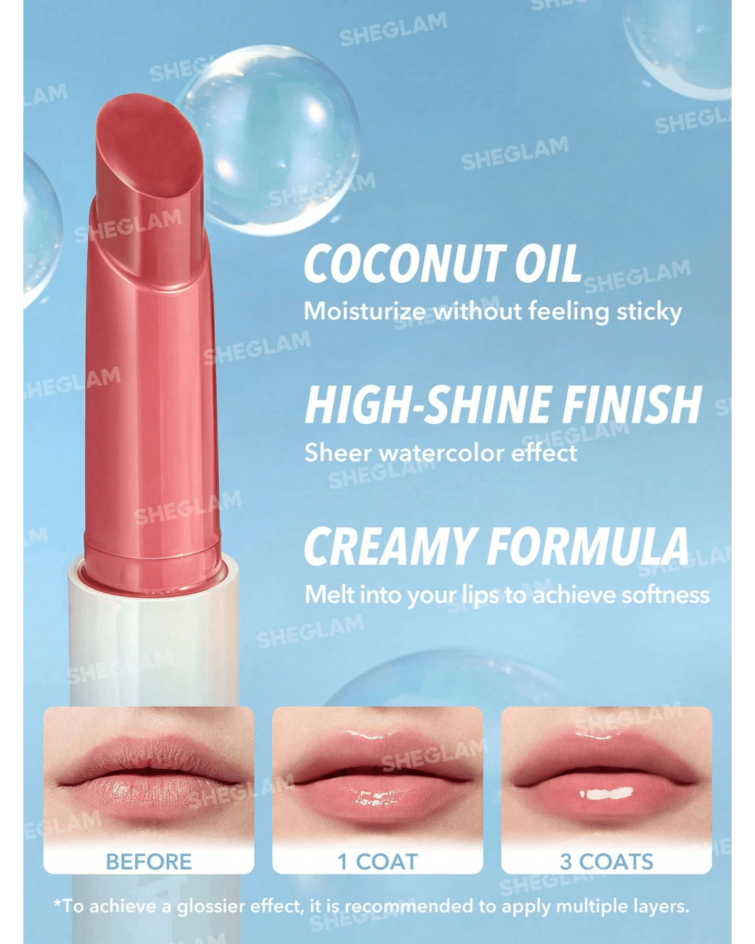 • To achieve a glossier effect, it is recommended to apply multiple layers.