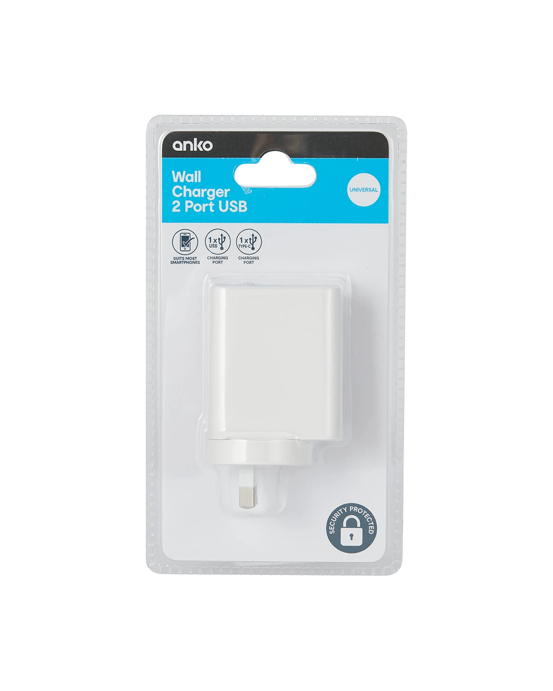 45W USB-C and 12W USB-A 2 Port Wall Charger - White