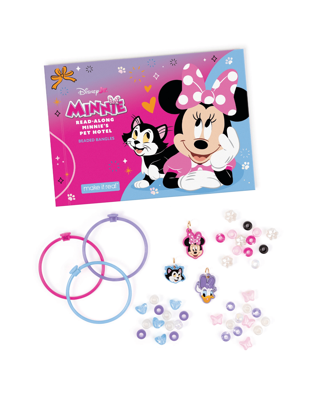 Spark creativity and fun with the Make It Real Disney Jr. Minnie Read Along Minnie's Pet Hotel Beaded Bangles! Children will enjoy crafting colourful bangles while exploring Minnie's delightful world of imagination.