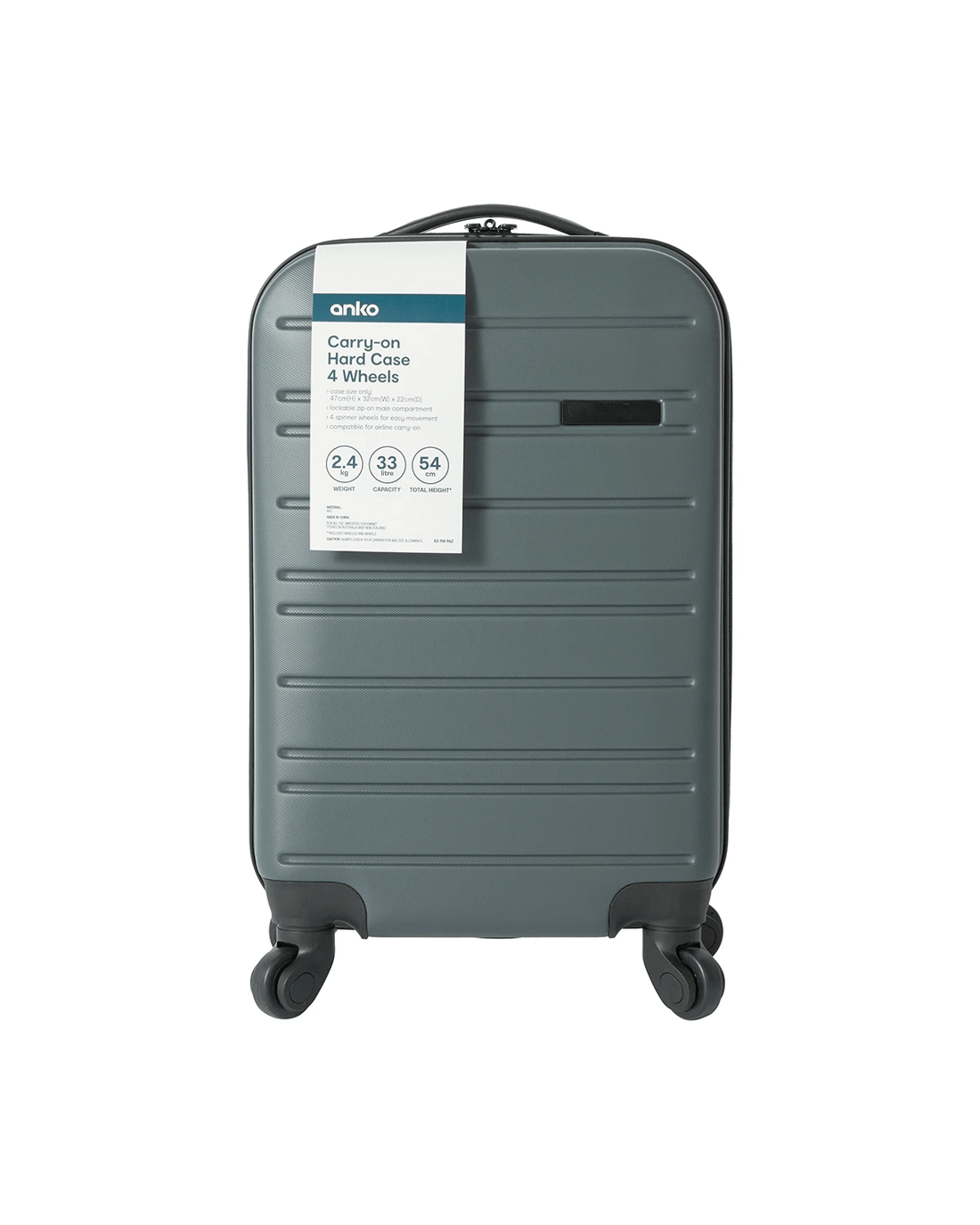 Sold by Kmart47cm 4 Wheels Carry On Hard Case - Charcoal