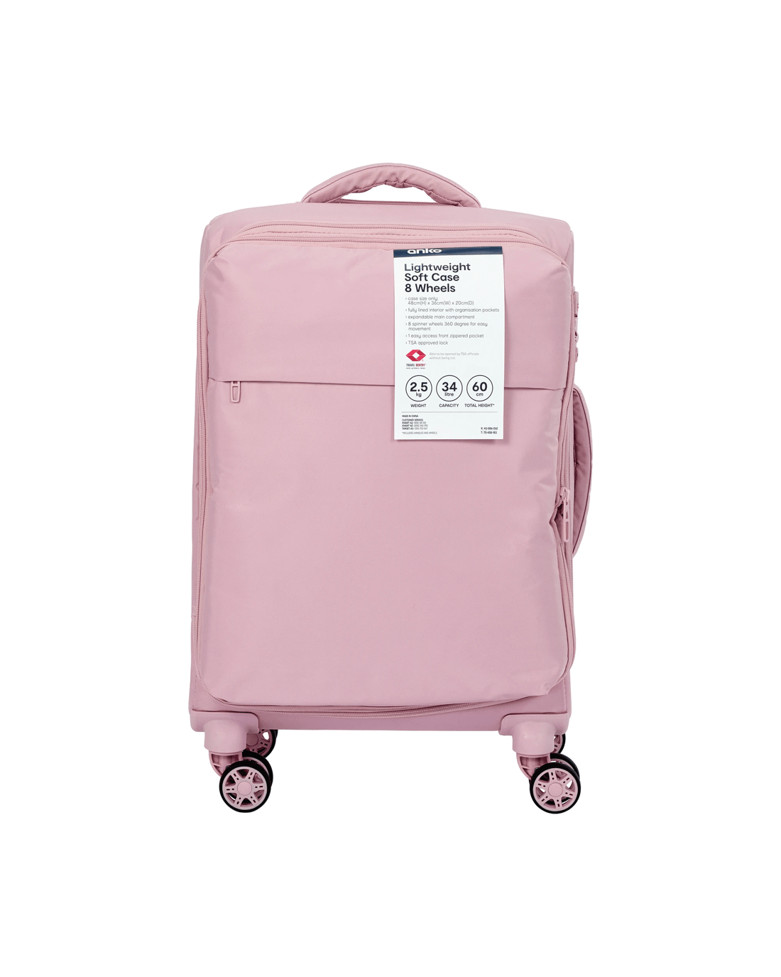 Sold by Kmart48cm 8 Wheels Lightweight Soft Case - Blush