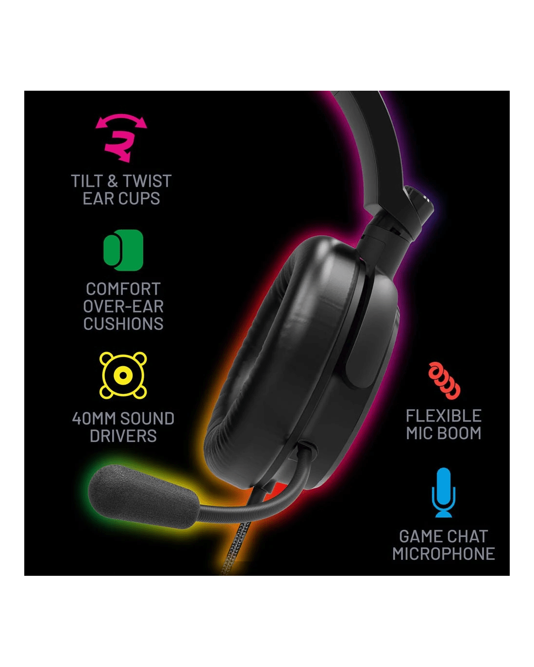 Sold by EB Games4Gamers Gaming Headset Wired Over Ear Multiplatform LED Lighting Mic 3.5mm - Black