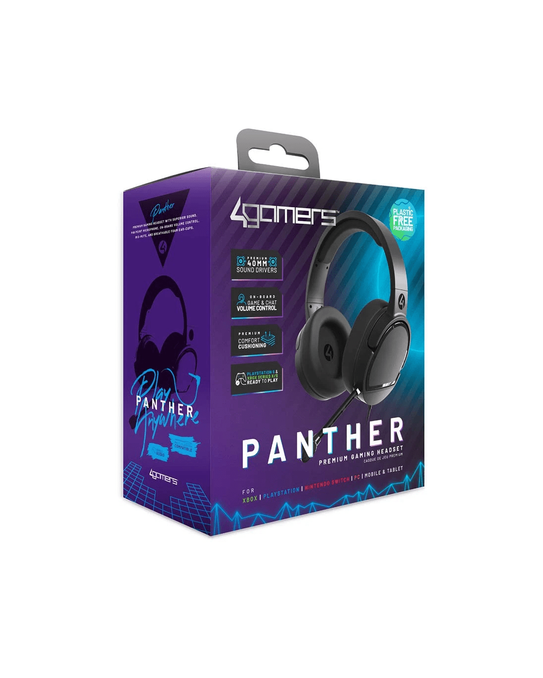 The PANTHER Performance Gaming Headset has a super lightweight, comfortable design featuring soft breathable mesh ear cushions and a padded headband with a flexible mic. The premium 40mm speaker drivers, Air-Flow Speaker Chambers and flexible bi-directional mic are designed for immersive game audio and clear chat.