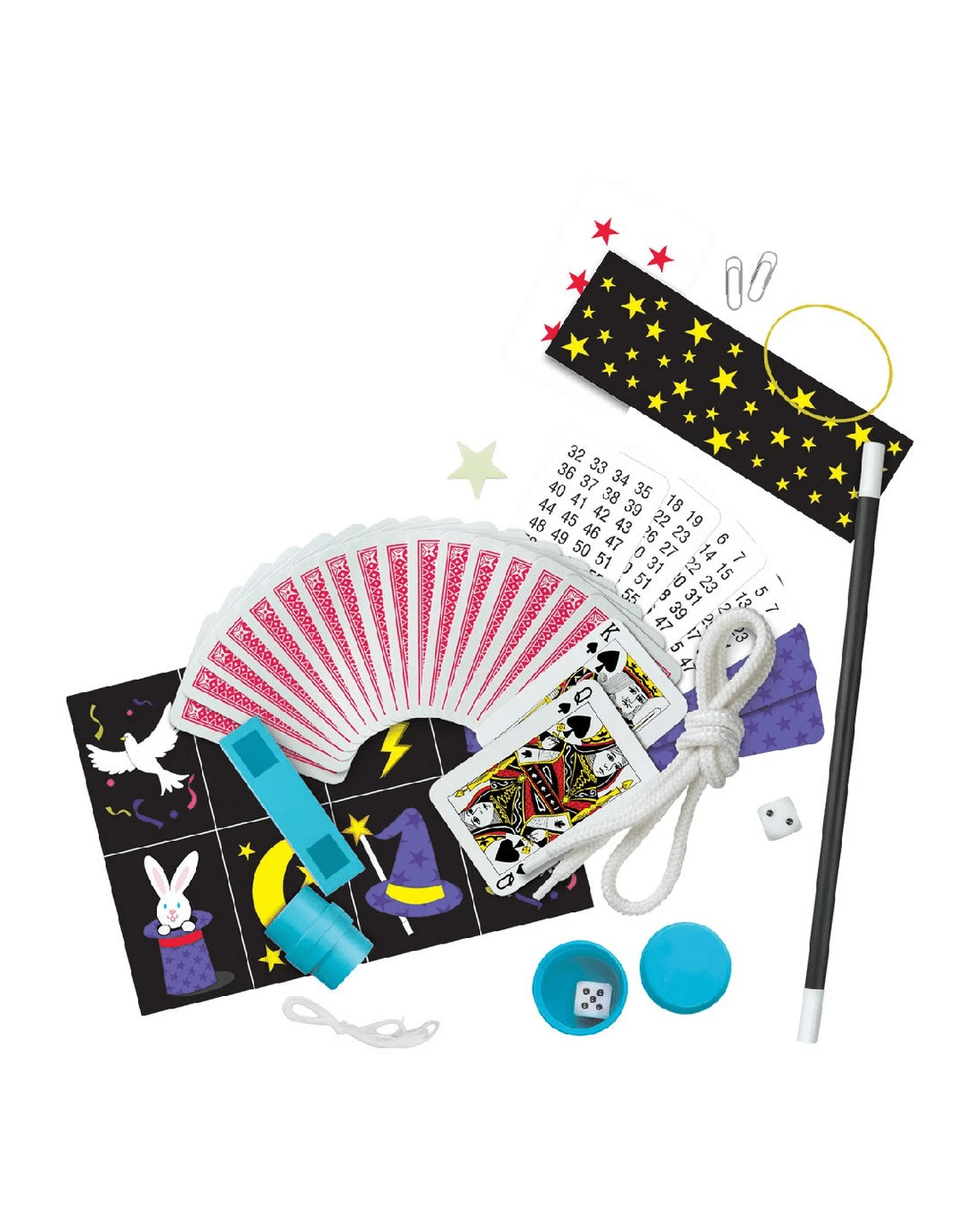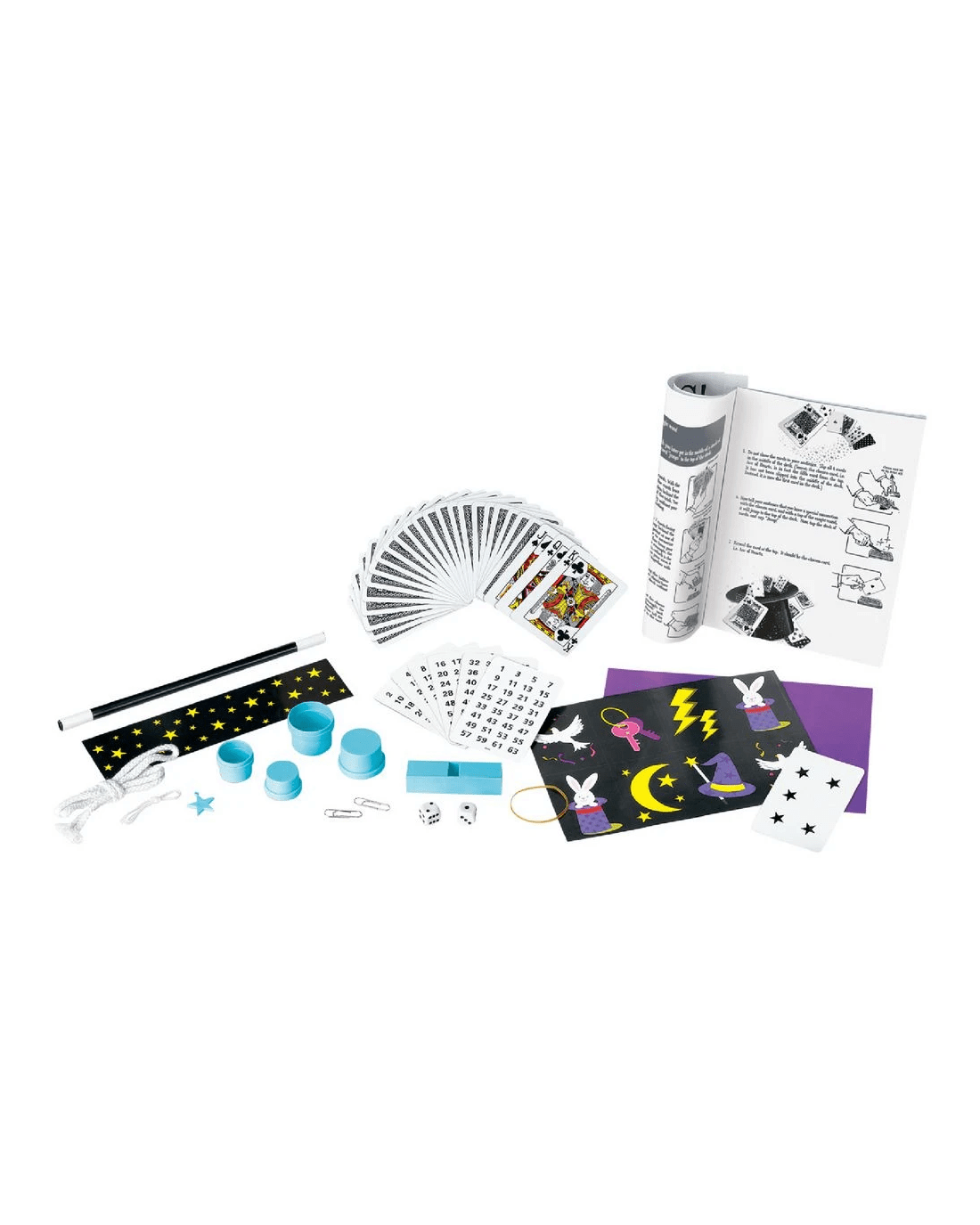 - This kit contains 12 magic tricks and a detailed instruction book.