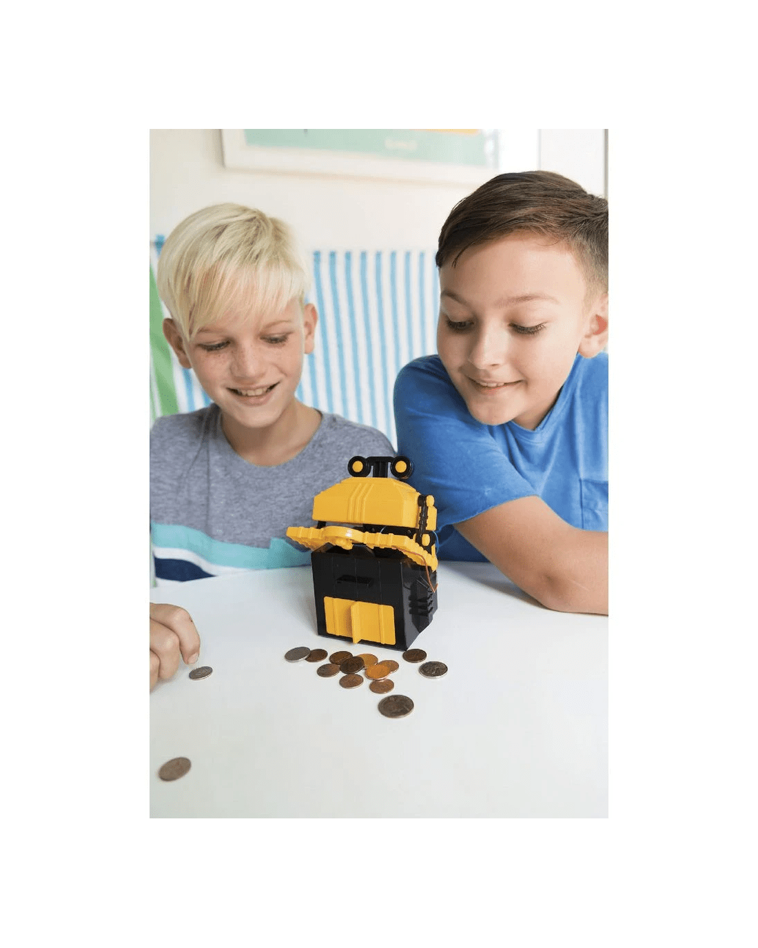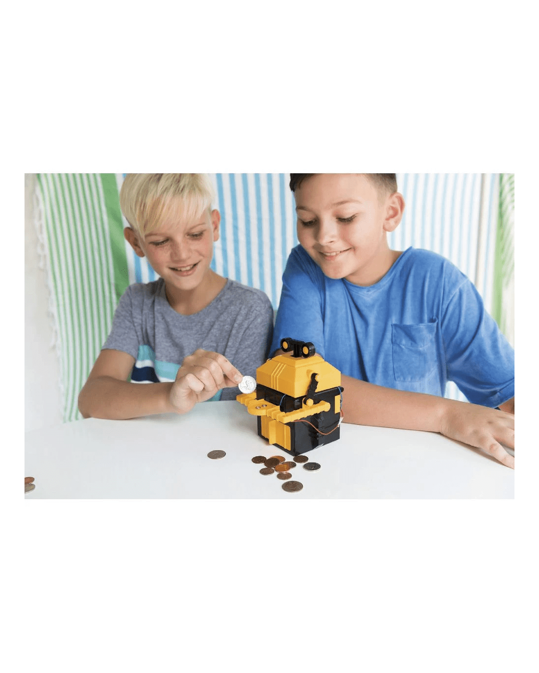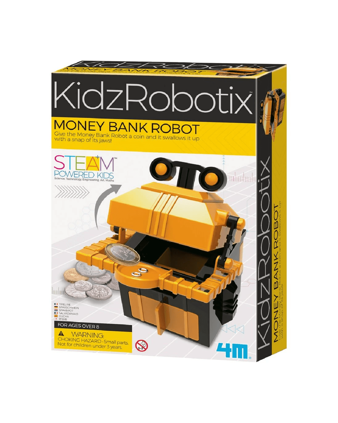 This 4M KidzRobotix Money Bank Robot is a great educational resource that helps introduce you to STEM skills like robotics, science, engineering, and construction. When assembled, you can place a coin on the Money Bank Robot's arm and watch it eat your money. This robot makes saving money fun and educational!