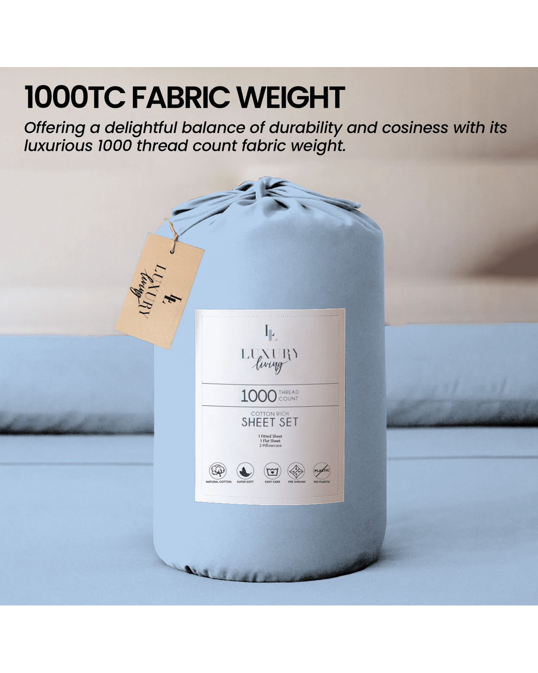 The 1000 thread count fabric promises exceptional durability, ensuring each piece remains soft and inviting wash after wash.
