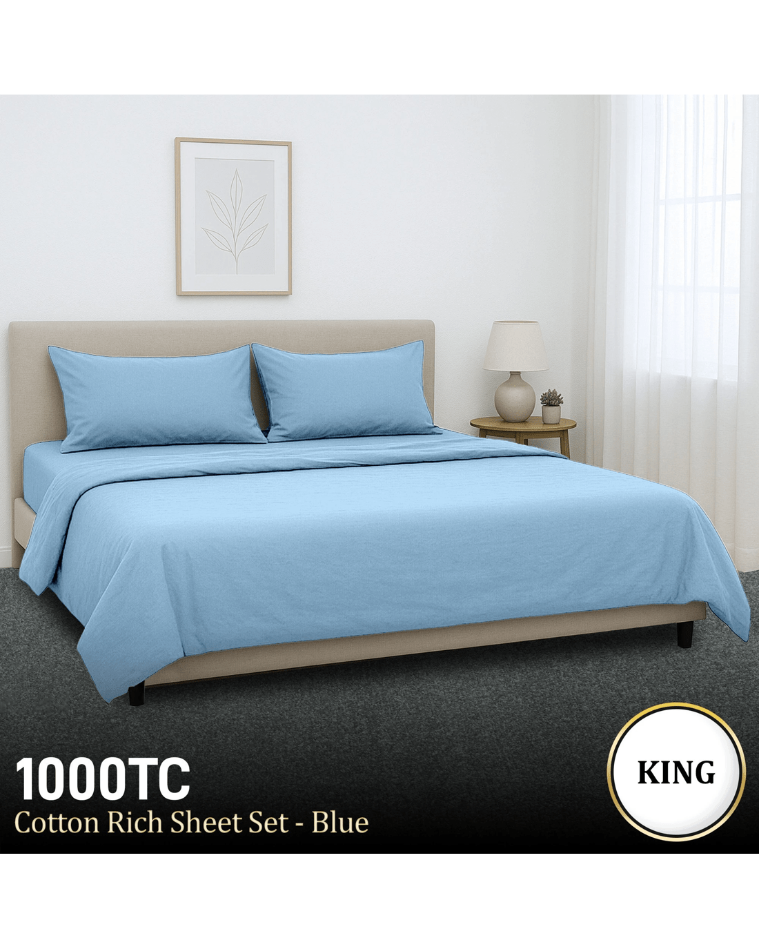 Sold by Klika Group4pc 1000 Thread Count Cotton Rich King Bed Sheet Gift Pack Cvc Microfibre Blend In Blue - King Bed