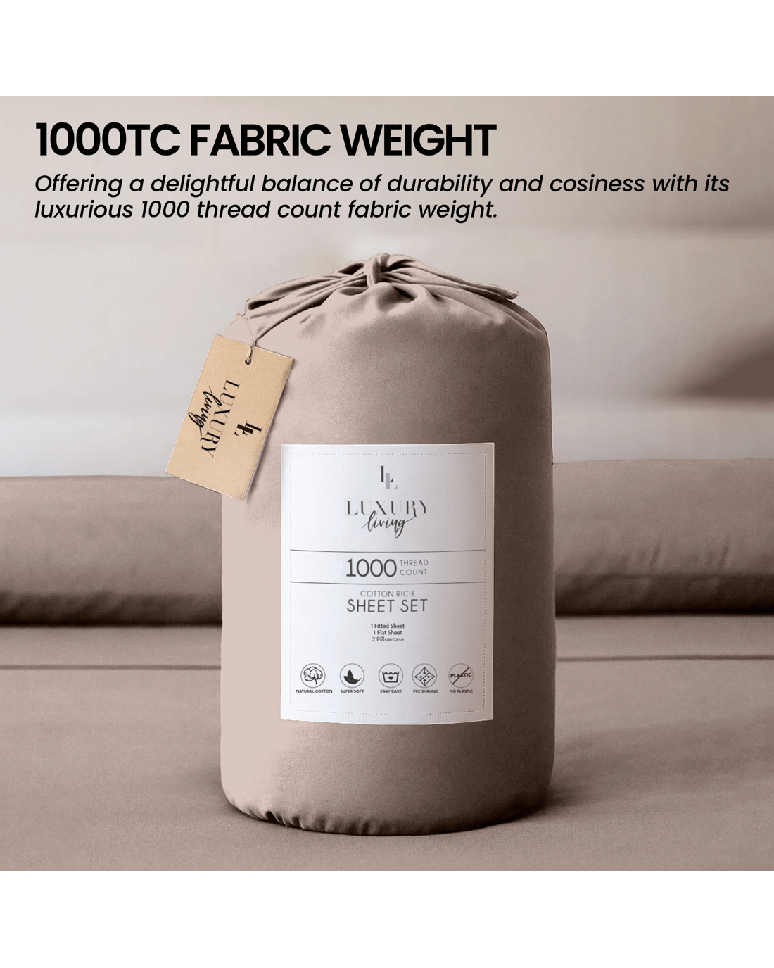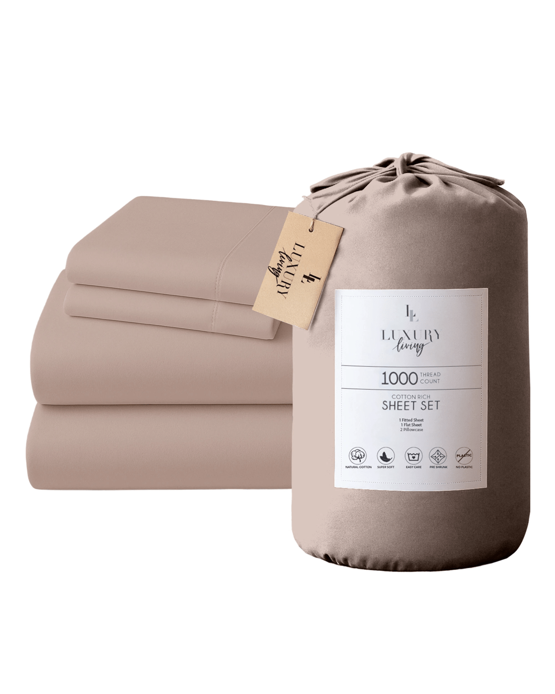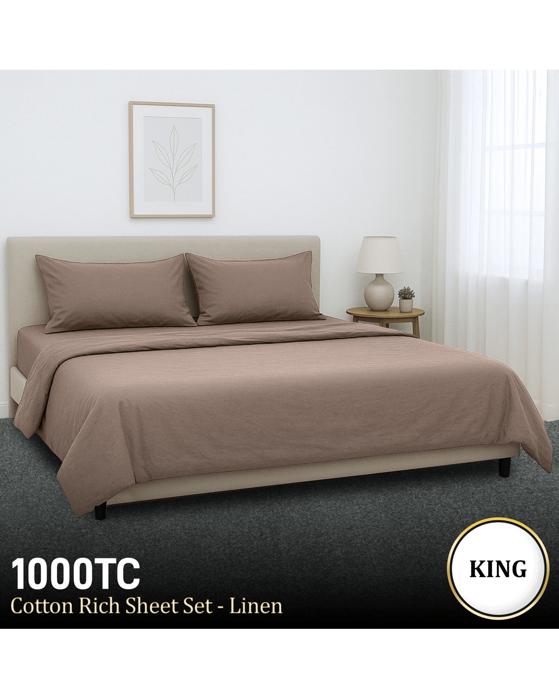 Sold by Klika Group4pc 1000 Thread Count Cotton Rich King Bed Sheet Gift Pack Cvc Microfibre Blend In Linen - King Bed