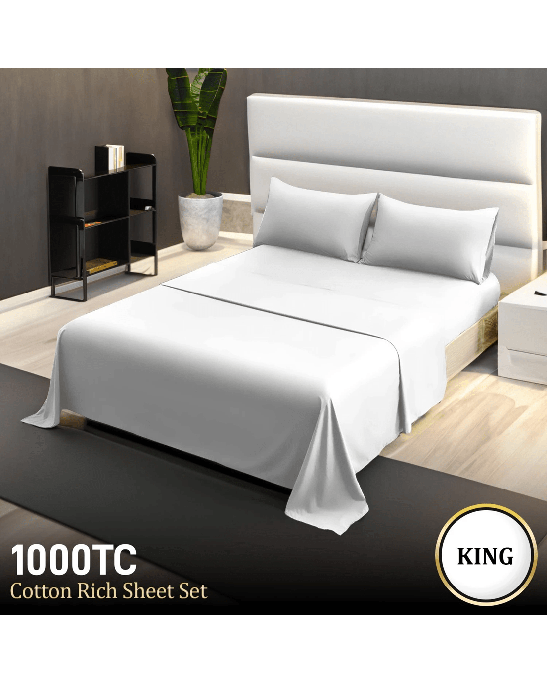 Sold by Klika Group4pc 1000 Thread Count Cotton Rich King Bed Sheet Gift Pack Cvc Microfibre Blend In White - King Bed