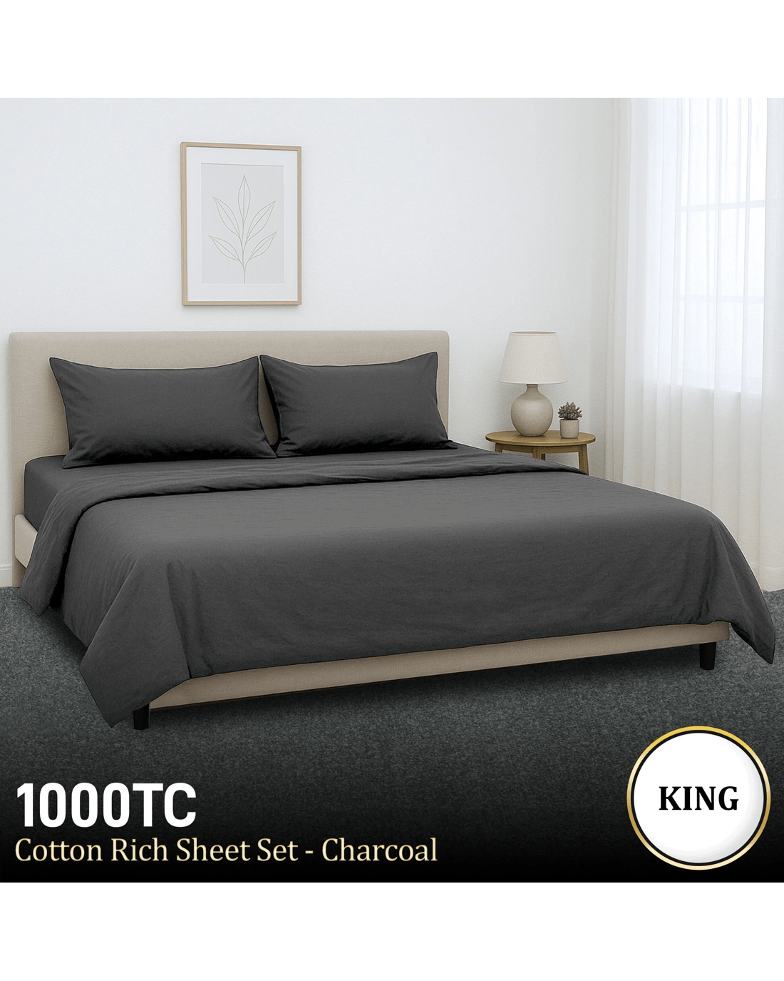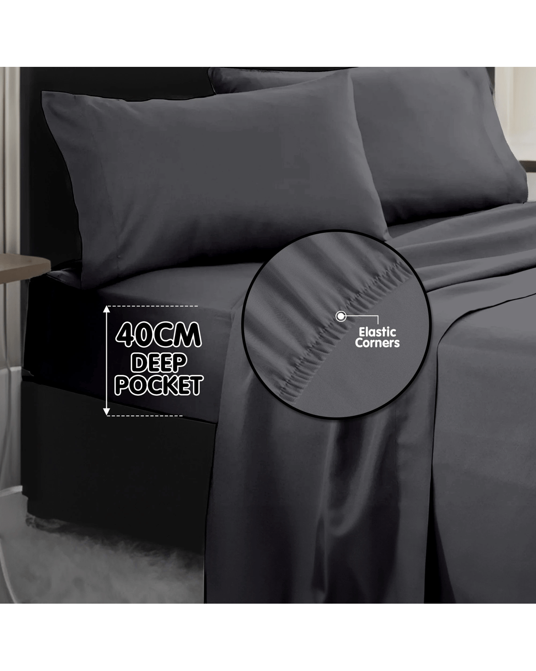 Sold by Klika Group4pc 1000 Thread Count Cotton Rich Sheet Gift Pack Cvc Microfibre Blend In Charcoal - King Bed