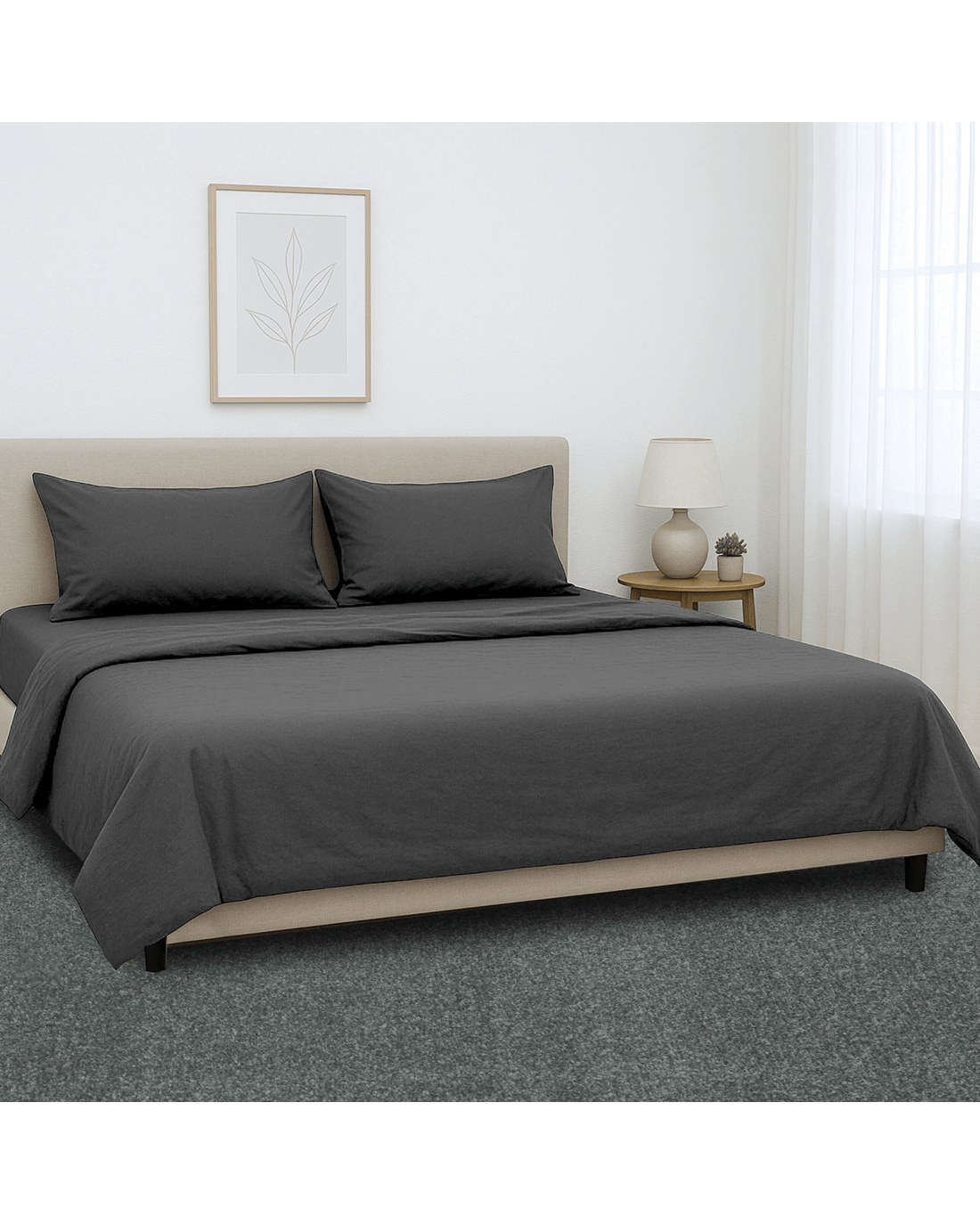 The set includes a fitted sheet, a flat sheet, and two matching pillowcases - everything you need to transform your bedroom into a serene retreat.