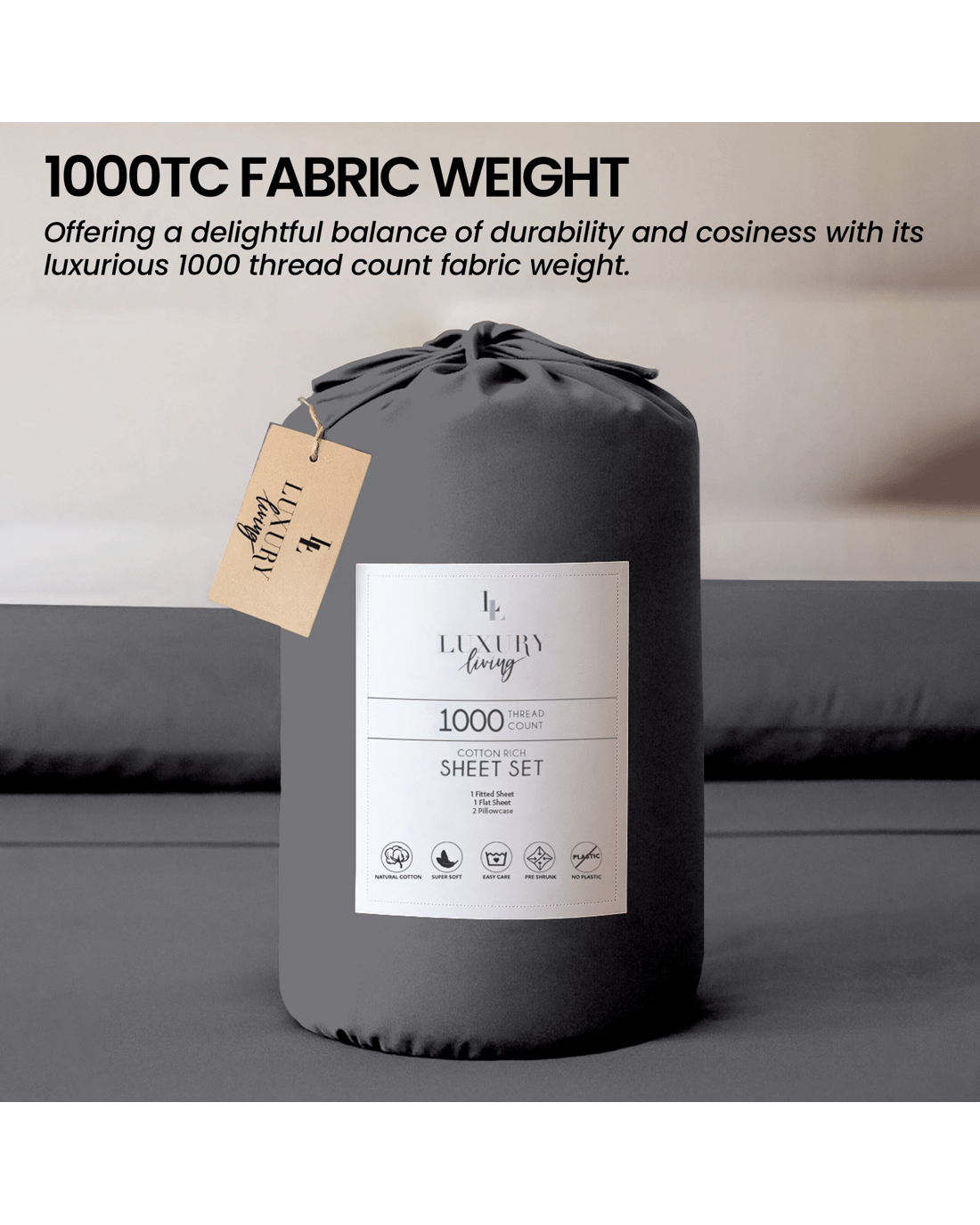 The 1000 thread count fabric promises exceptional durability, ensuring each piece remains soft and inviting wash after wash.