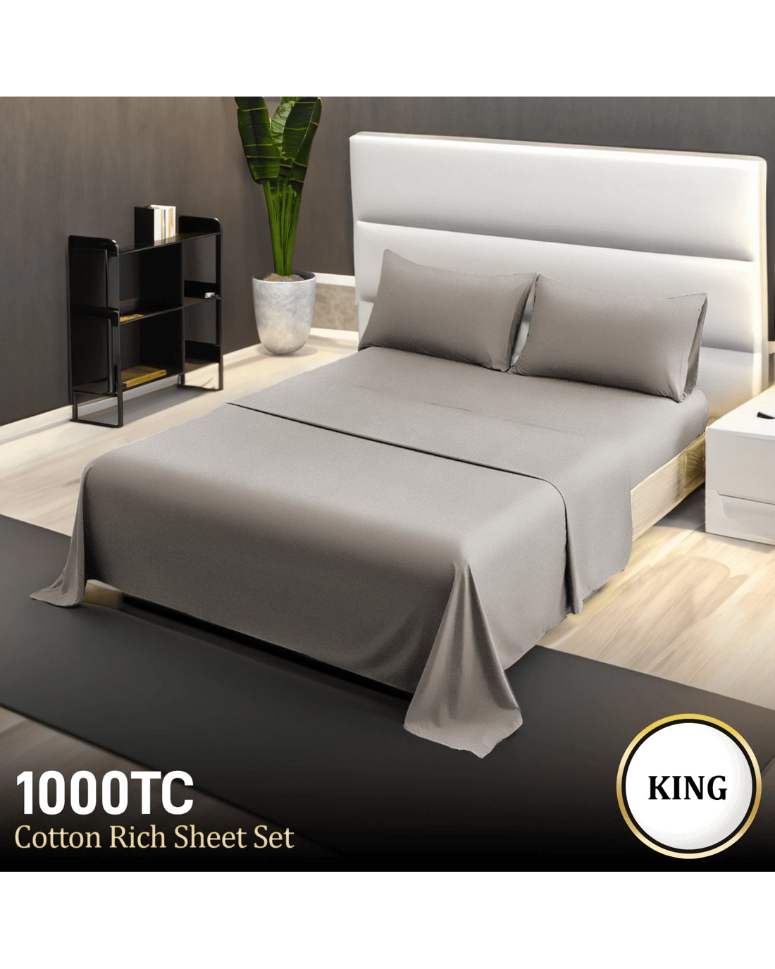 Sold by Klika Group4pc 1000 Thread Count Cotton Rich Sheet Gift Pack Cvc Microfibre Blend In Silver - King Bed