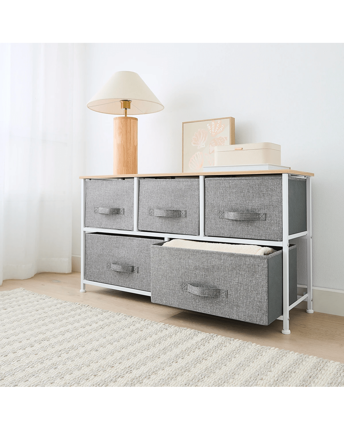 - 5 fabric storage drawers