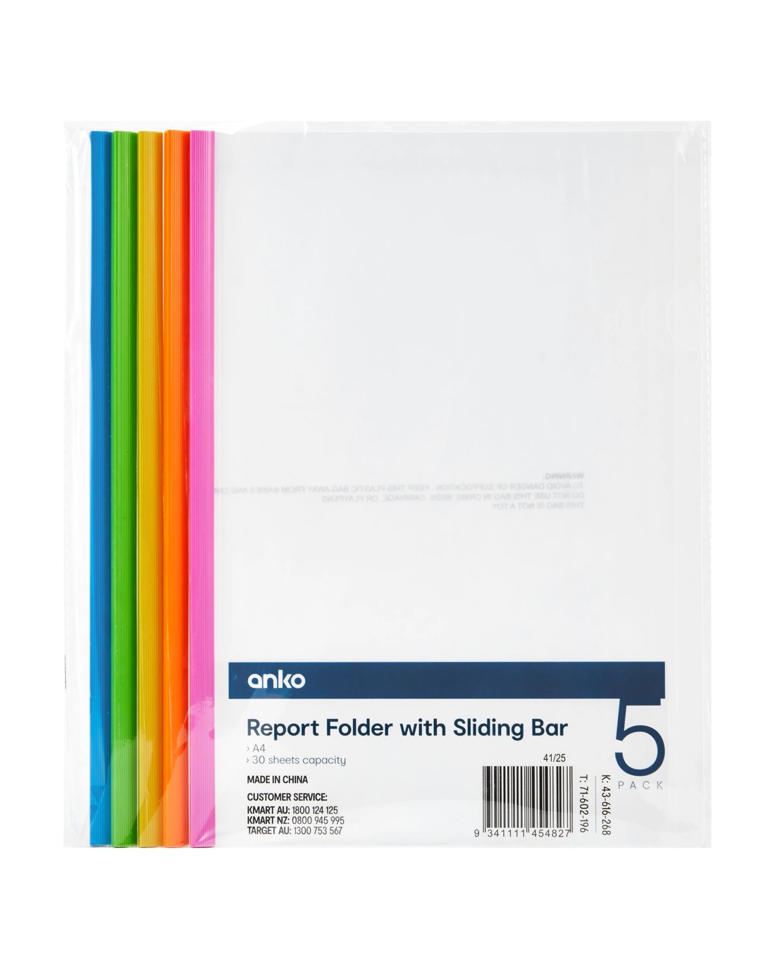 Sold by Kmart5 Pack A4 Report Folder with Sliding Bar