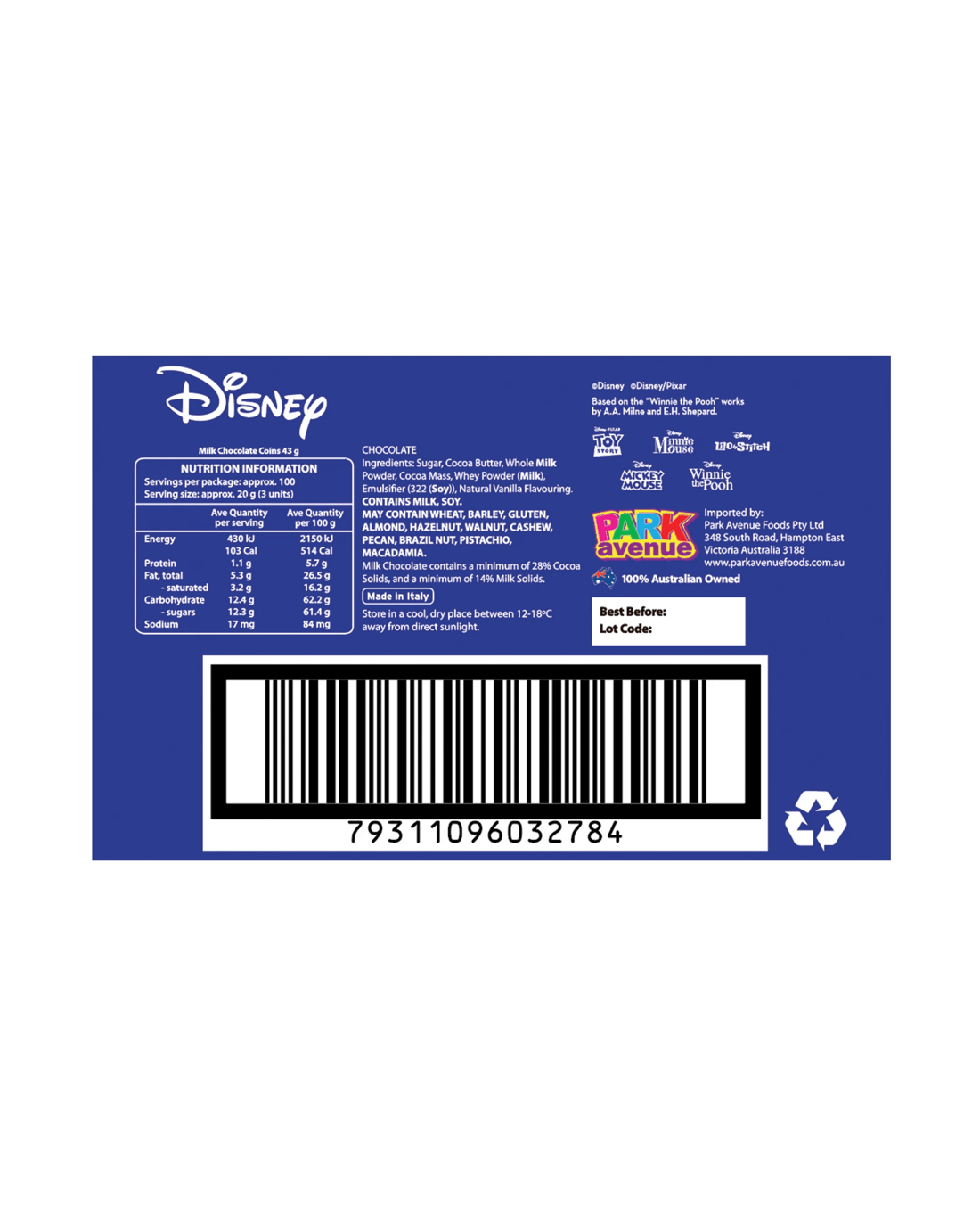 - Includes only 1 pack of 5 Park Avenue Disney Milk Chocolate Coins